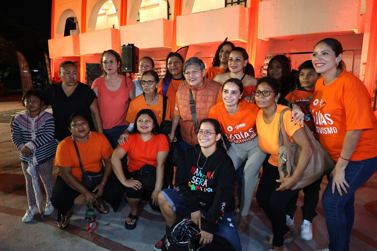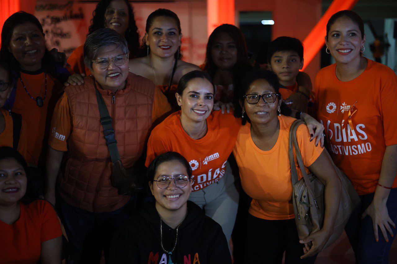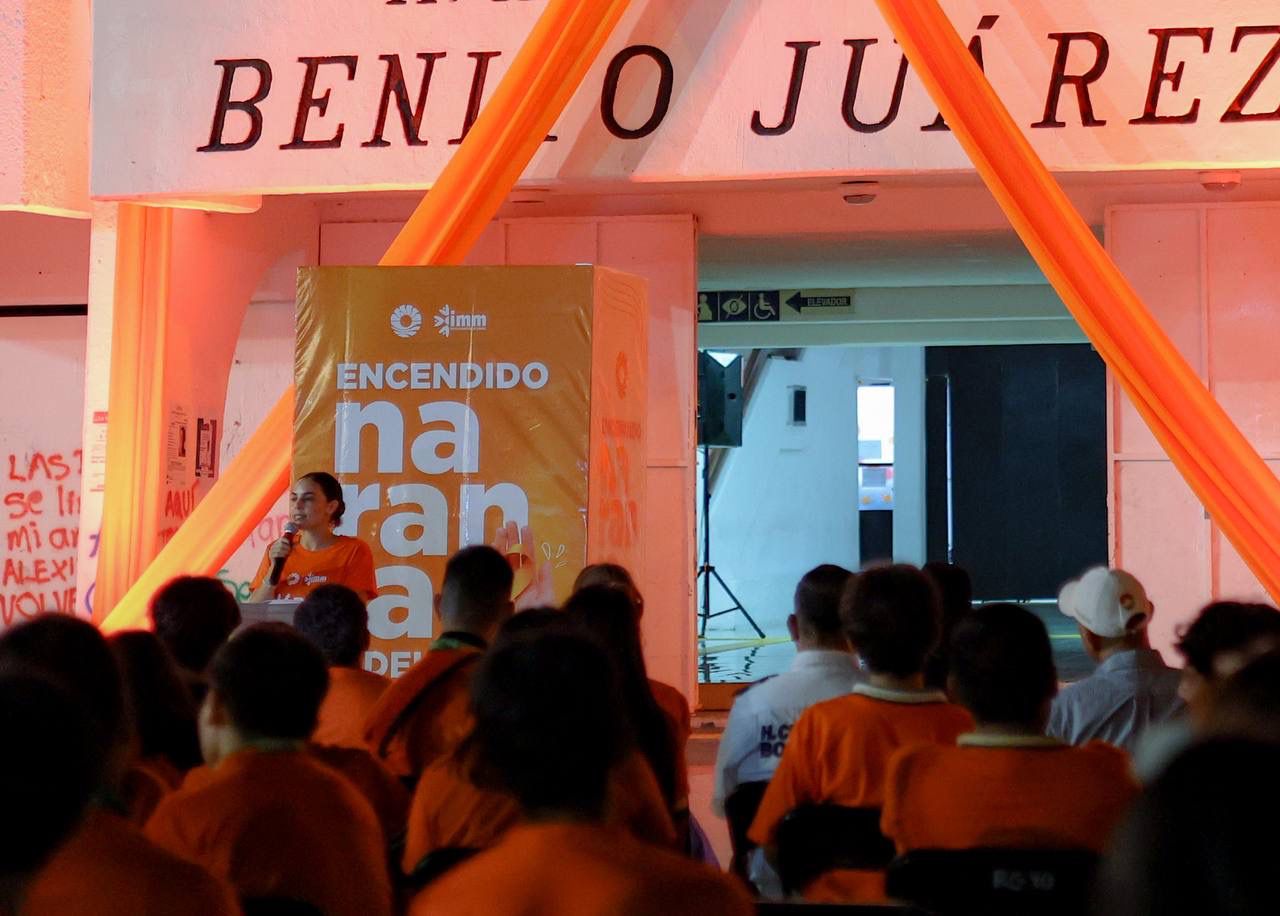 “Este encendido naranja es una promesa, un símbolo de esperanza y un compromiso, la promesa de que sí se puede vivir sin violencia, la esperanza de una sociedad más justa y respetuosa y el compromiso de ser agentes de cambio para construir el mundo que soñamos”, enfatizó frente estudiantes, jóvenes de servicio social del Instituto Municipal de la Juventud (IMJUVE), así como mujeres beneficiarias de diversos programas del IMM.