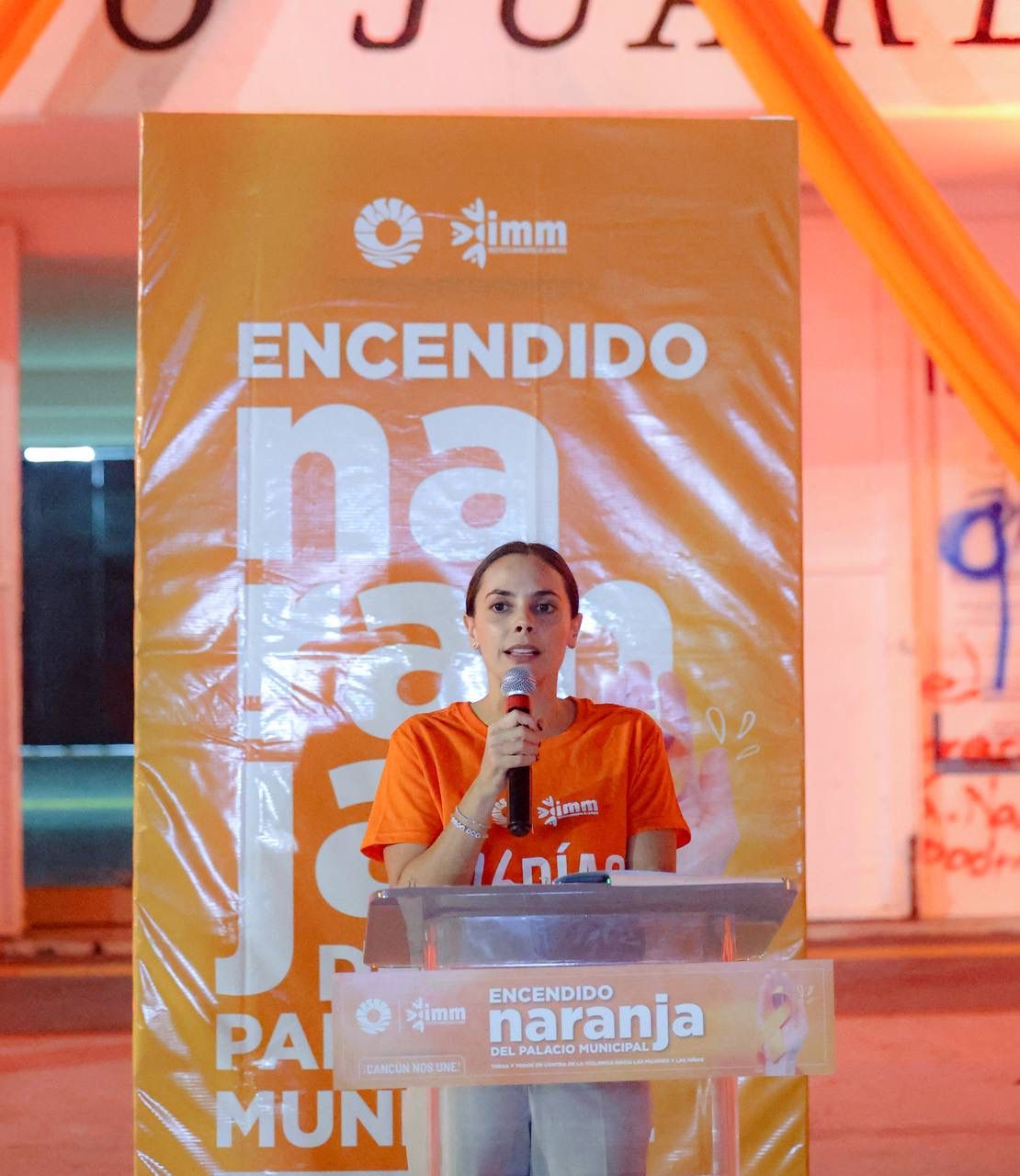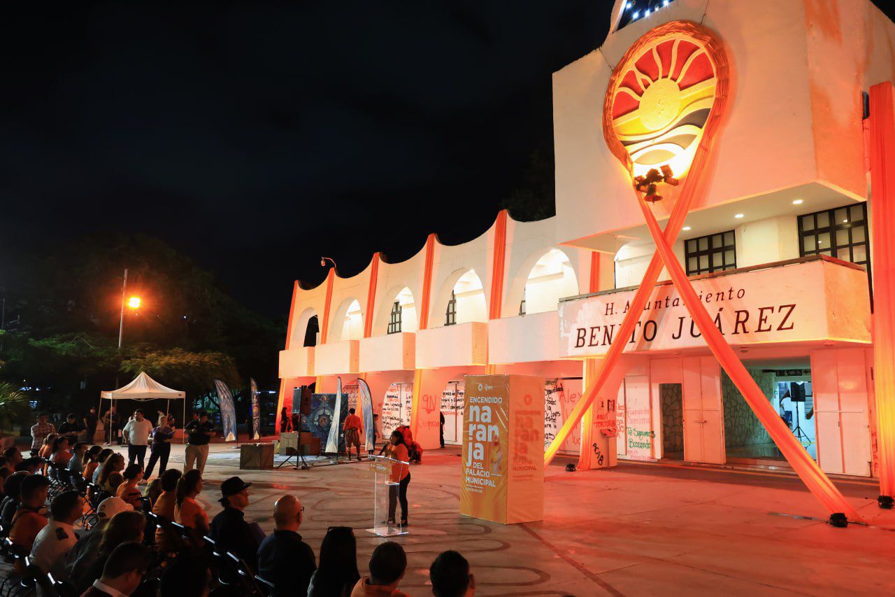 Cancún, Q. R., a 25 de noviembre de 2024.- En el marco del Día Internacional de la Eliminación de la Violencia Contra la Mujer, que se conmemora cada 25 de noviembre, la Presidenta Municipal, Ana Paty Peralta, a través del Instituto Municipal de la Mujer (IMM), iluminó de color naranja la fachada del Palacio Municipal, con la finalidad de concientizar, sensibilizar y educar sobre la prevención y denuncia de estas acciones.