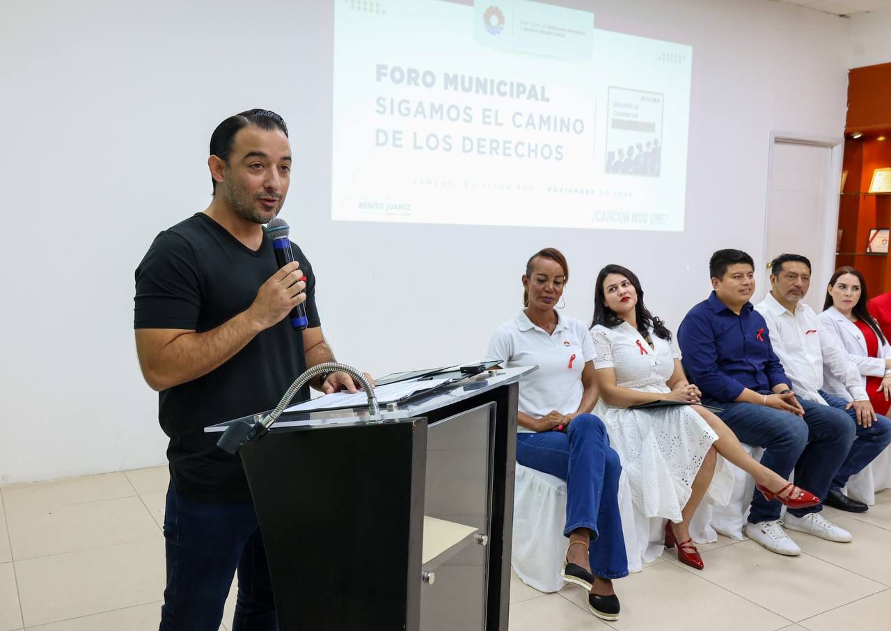 Cancún, Q. R., a 29 de noviembre de 2024.- “El Gobierno de Benito Juárez, que encabeza la Presidenta Municipal, Ana Paty Peralta, tiene el firme compromiso de respetar los Derechos Humanos y trabajar por la no discriminación de las personas, en particular de los grupos prioritarios como las personas que viven con VIH”, afirmó el secretario general del Ayuntamiento, Pablo Gutiérrez Fernández, en representación de la Primera Autoridad Municipal, en el Foro Municipal “Sigamos el camino de los derechos”.