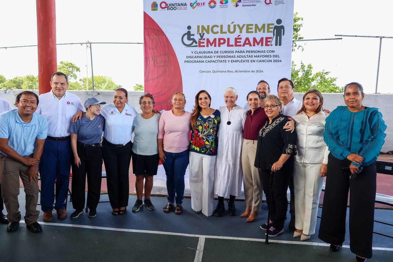 En el mismo sitio, participaron también en la clausura de cursos para personas con discapacidad y adultos mayores del programa “Capacítate” y “Empléate” en Cancún 2024, en el que se entregaron 35 constancias a los alumnos que culminaron los talleres de pintura artística y elaboración de piñatas.