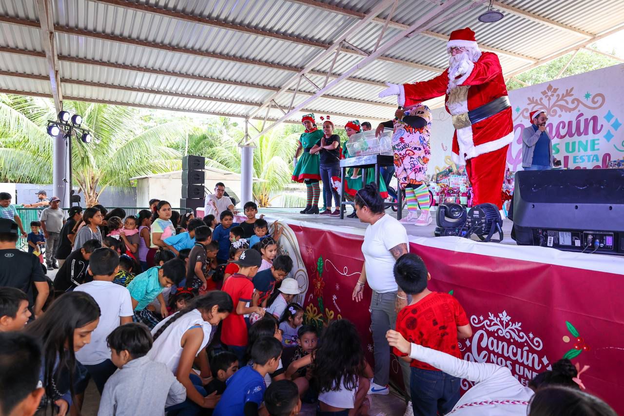 Ante los gritos de los más pequeños del hogar, las sedes se llenaron de alegría con diversas actividades que organizaron las diferentes dependencias municipales, que con la suma de esfuerzos de empresas, lograron llevar este festejo a las familias cancunenses, especialmente cuando inició la rifa de juguetes y el show navideño con personajes representativos de esta temporada, con Santa Claus y sus duendes como figura principal para alegrar a los más pequeños.