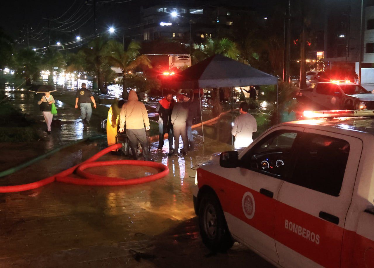 A su vez, el Heroico Cuerpo de Bomberos con 25 trabajadores y 8 camionetas recorrieron los puntos críticos de la ciudad para garantizar la seguridad, el bienestar de los cancunenses y minimizar los efectos negativos de la lluvia.