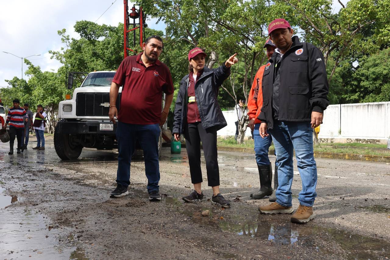 Al iniciar la supervisión, acompañada del titular de Protección Civil, Antonio Riveroll Ribbon, la Alcaldesa visitó el fraccionamiento Tierra Maya, en donde personal municipal realizó la limpieza de cinco captadores con maquinaria Vactor, así como el rastrillado del perímetro y retiro de residuos sólidos y basura vegetal, manteniendo la infraestructura pluvial en óptimas condiciones.