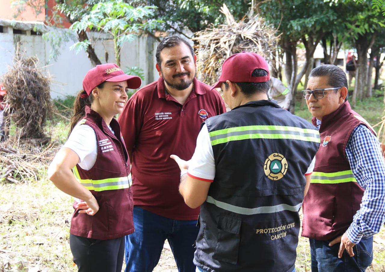 Posteriormente, las autoridades se trasladaron a la Av. Nichupté, a la altura del Fracc. Villas Cancún, en donde se llevó a cabo el chapeo, poda de un área verde, retiro de un árbol caído y recoja de basura vegetal, despejando la zona.
