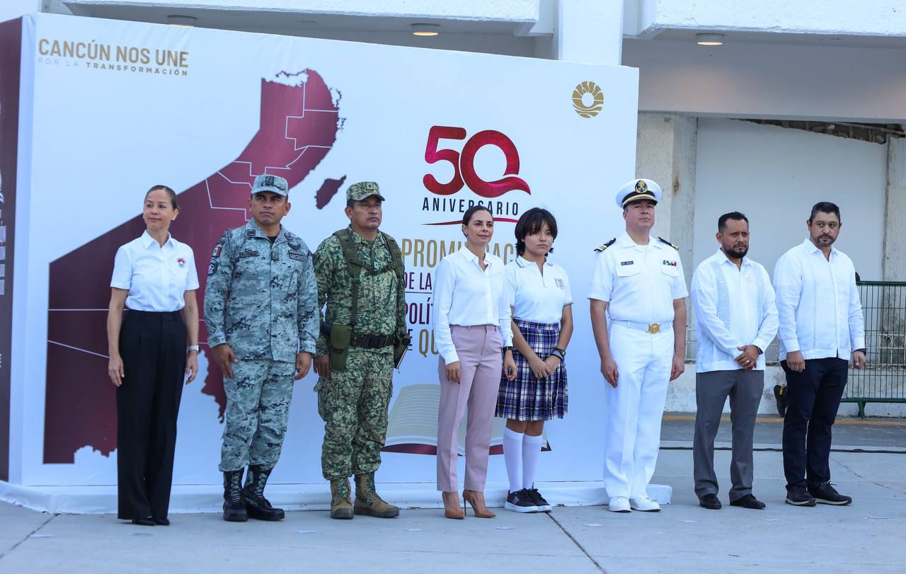 Ana Paty Peralta enfatizó que la mejor manera de honrar a la Constitución y el legado de quienes la crearon, es guiarse por los valores, justicia, honradez, lealtad y el amor por la tierra. “Les hablo a mi gran equipo del Ayuntamiento, estos valores deben estar presentes en cada acción que emprendamos para seguir construyendo un Quintana Roo que sea ejemplo de unidad, justicia y prosperidad para los próximos 50 años”, subrayó.