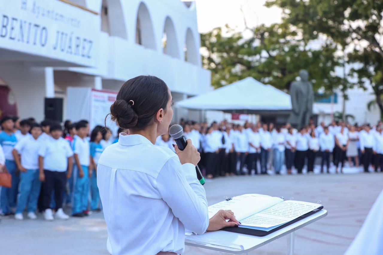 El izamiento a la Bandera Nacional estuvo a cargo del 64 Batallón de Infantería del Ejército Mexicano, mientras que el juramento al Lábaro Patrio fue dirigido por el alumno, Leonel Jesús Novelo Jiménez, de la Escuela Secundaria Técnica número 11 “Moisés Saénz Garza”.