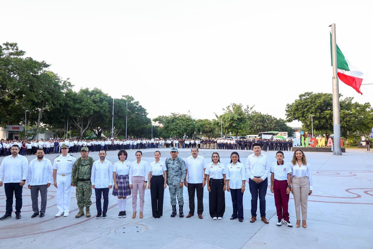 Además, el Himno a Quintana Roo y Nacional Mexicano fue interpretado por la Banda de Música del Ayuntamiento, acompañada por las escuelas Secundaria Técnica número 11 “Moisés Saénz Garza” y la Secundaria General número 6 “Belisario Domínguez”, así como funcionarios de las diferentes dependencias del Gobierno Municipal, que presenciaron este significativo acto cívico.