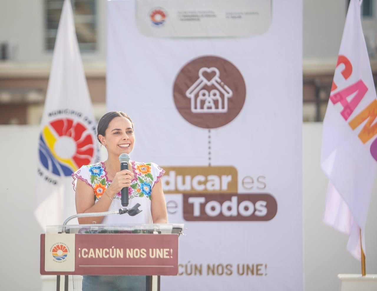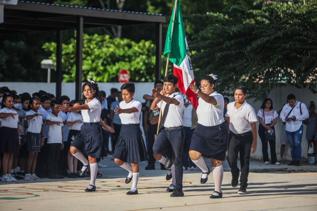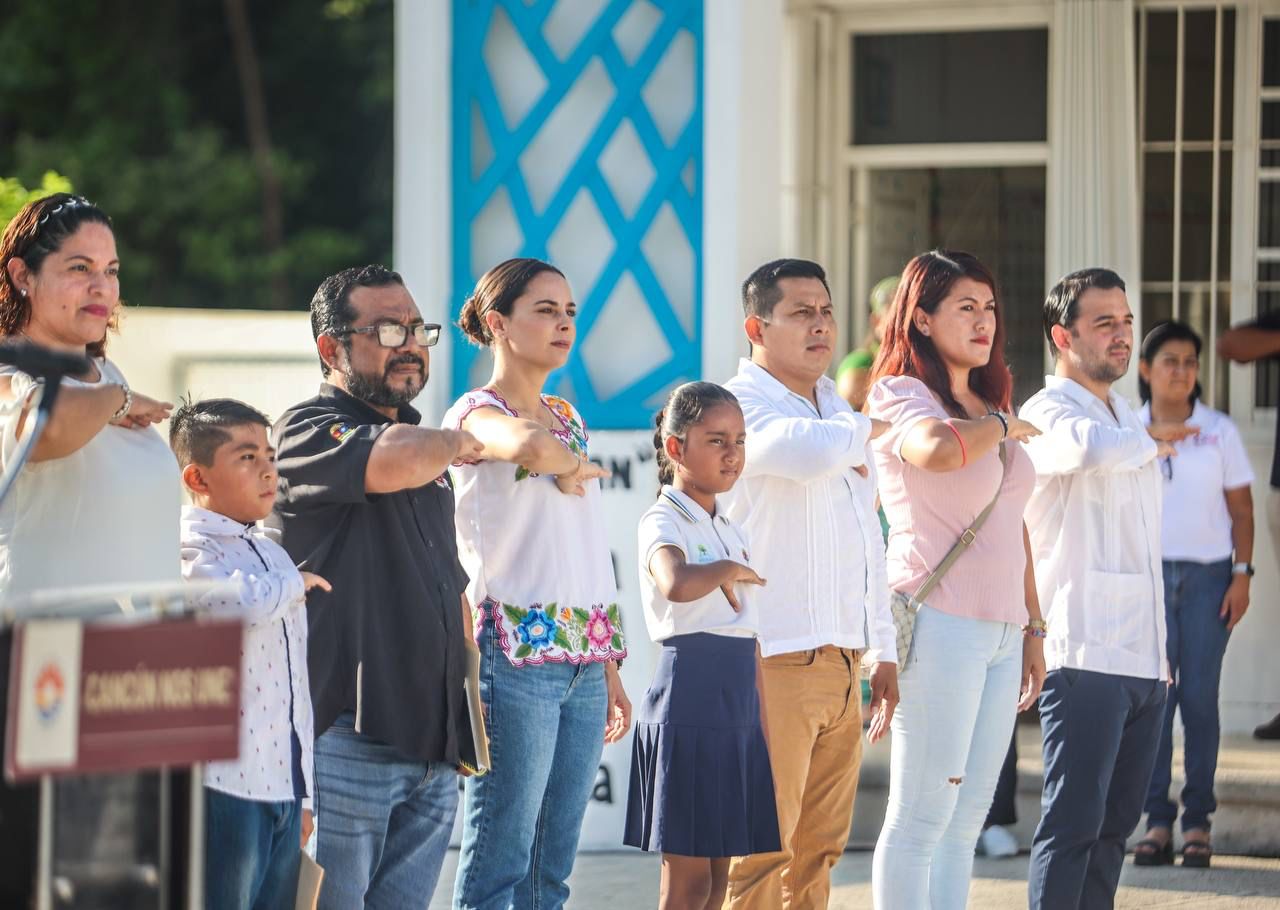 Cancún, Q. R., a 26 de junio de 2023.- Como todos los lunes, desde muy temprana hora, la Presidenta Municipal, Ana Paty Peralta, encabezó la ceremonia de honores a la Bandera y constató el programa “Educar es de todos” en la primaria María del Socorro Puerto Zumárraga, donde señaló que es muy importante realizar estas acciones en las diferentes escuelas de la ciudad, con el fin de reforzar los valores cívicos, para cantar los himnos Nacional Mexicano y a Quintana Roo, con mucho amor y muchas ganas de sentirse orgullosos de las raíces.