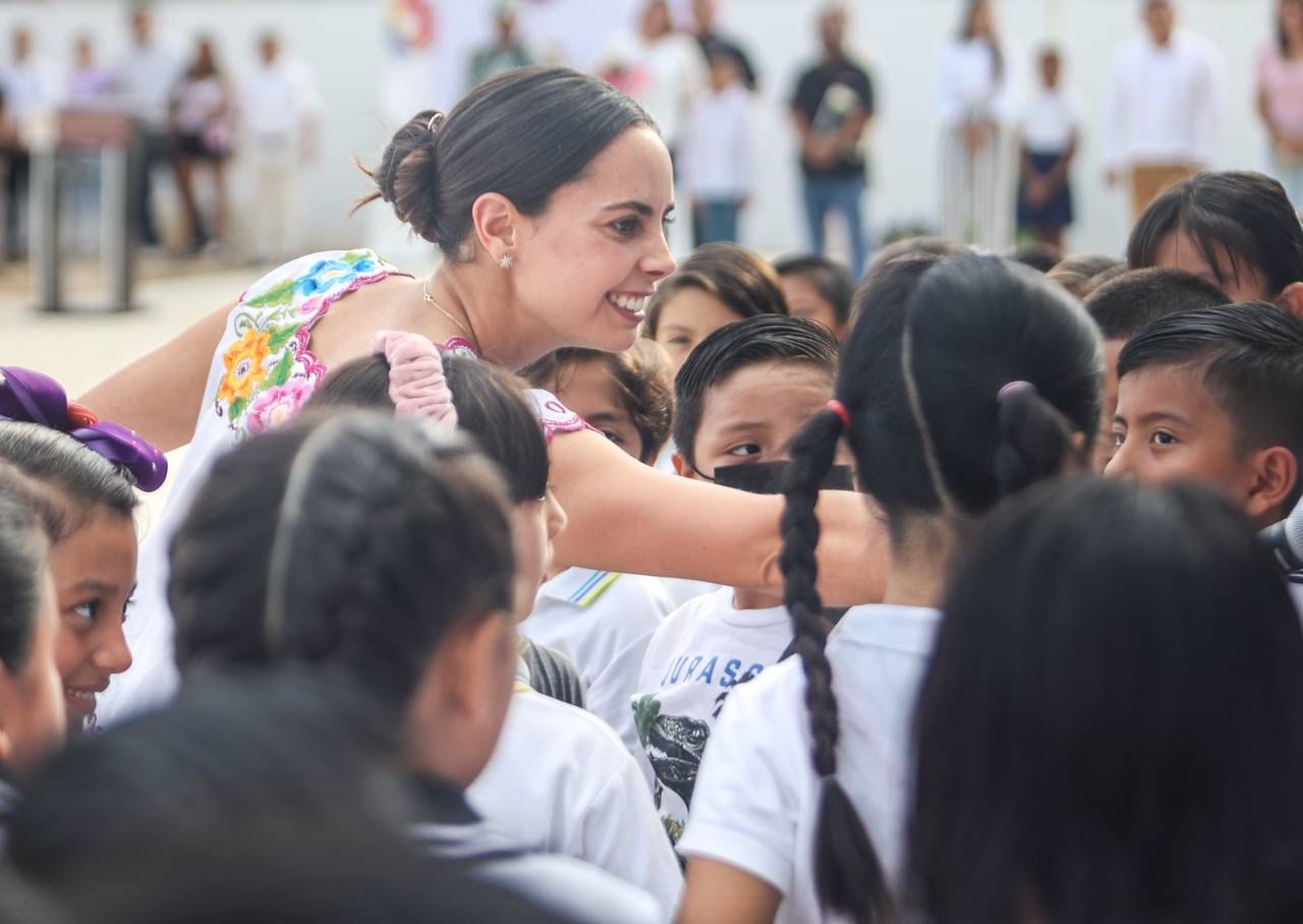 Por otra parte, la Presidenta Municipal Ana Paty Peralta, felicitó a los alumnos Ramsés Emmanuel Canales Díaz y Yeiri Shecid Aguilar Pinto de sexto año por ser los alumnos más destacados en la zona escolar y que participaron en la Olimpiada del Conocimiento Infantil 2023.
