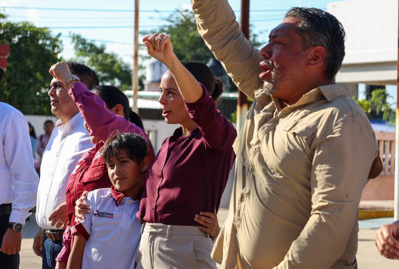 La Gobernadora reafirmó que se harán domos en todas las escuelas de Quintana Roo, como parte de las estrategias de combate a la corrupción, ya que se logra hacer eficiente el dinero del pueblo para el pueblo y se construyan escuelas, calles, infraestructura urbana, por mencionar algunos rubros de inversión.