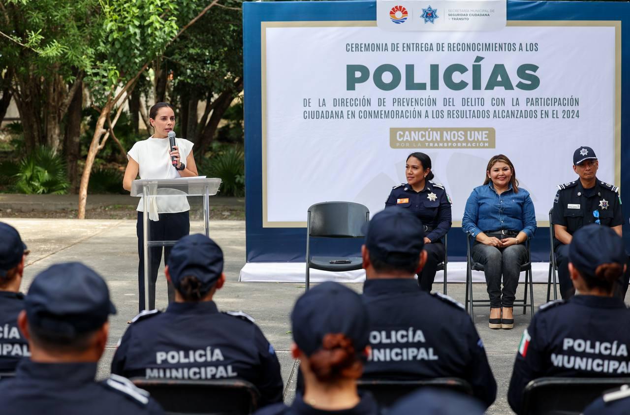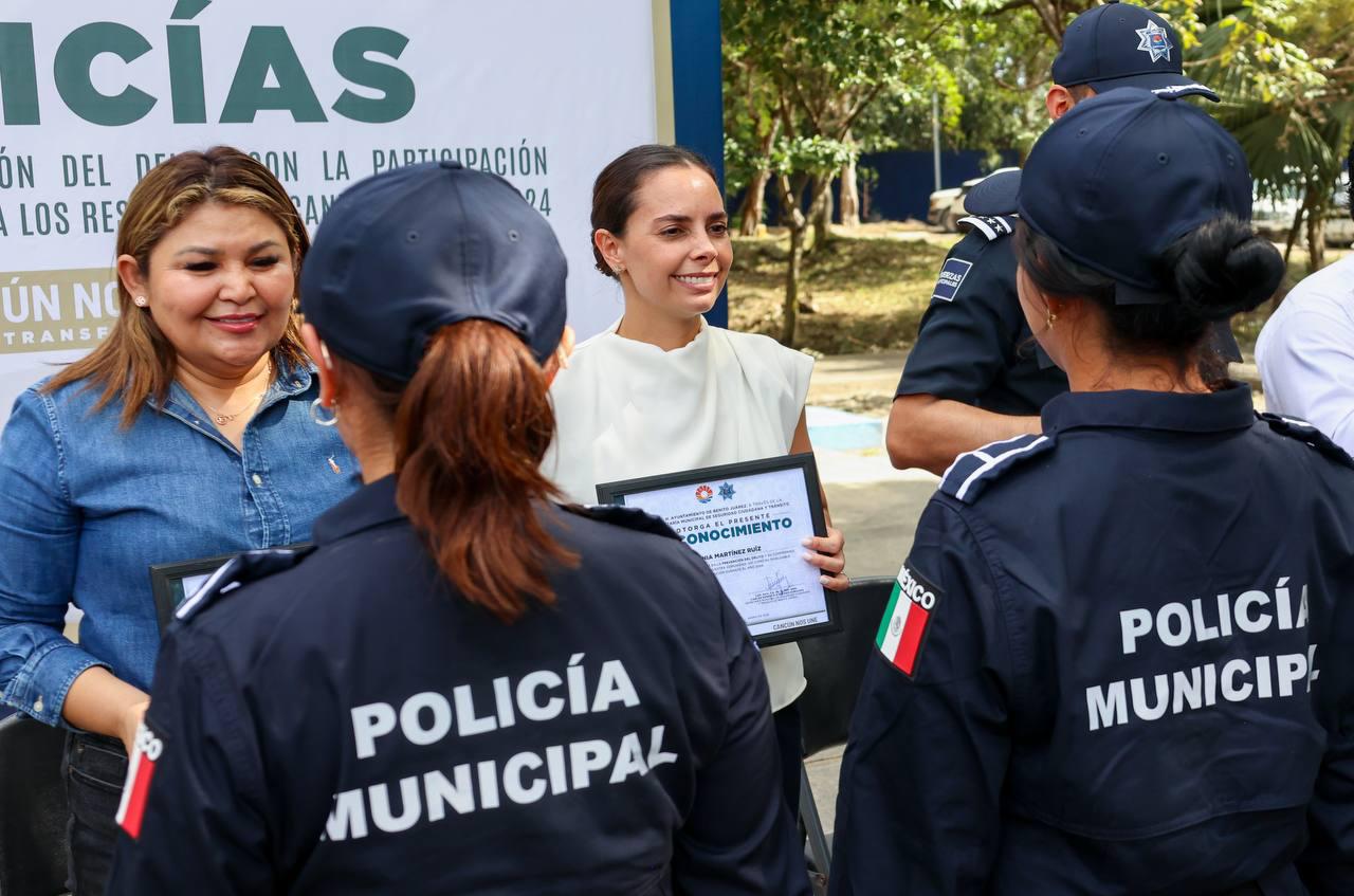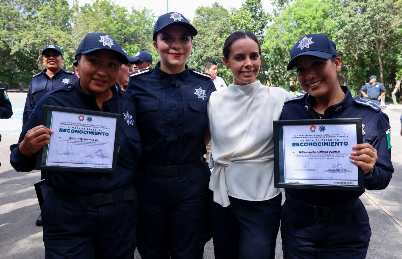 “Hoy nos reunimos para reconocer el esfuerzo de quienes día a día trabajan con entrega por la seguridad de nuestra ciudad, por la paz en nuestras calles, en nuestras colonias, y sobre todo, por la integridad de las familias cancunenses”, expresó la Alcaldesa durante su intervención en la Academia de Policía.