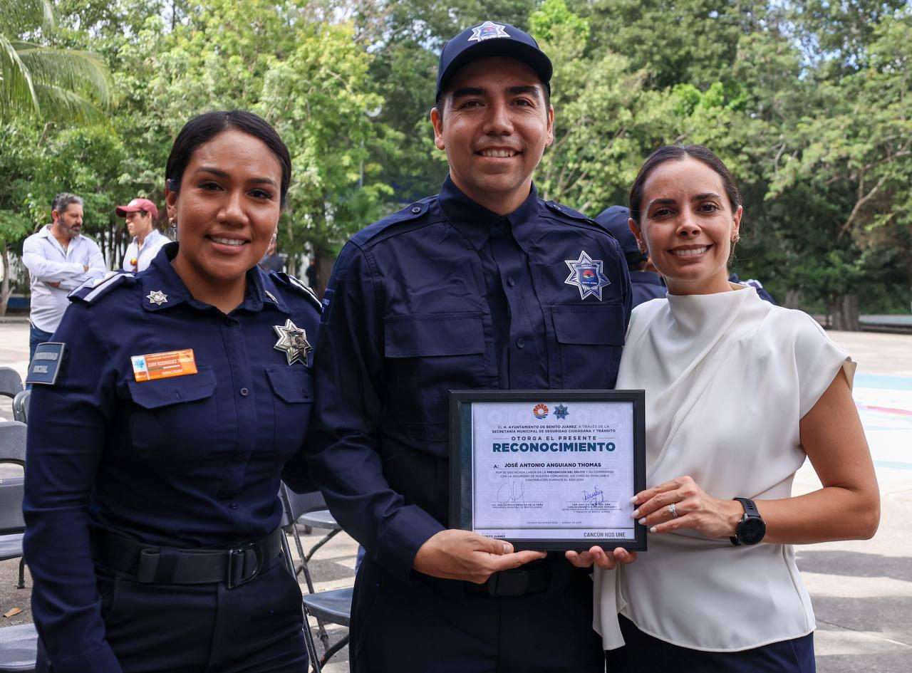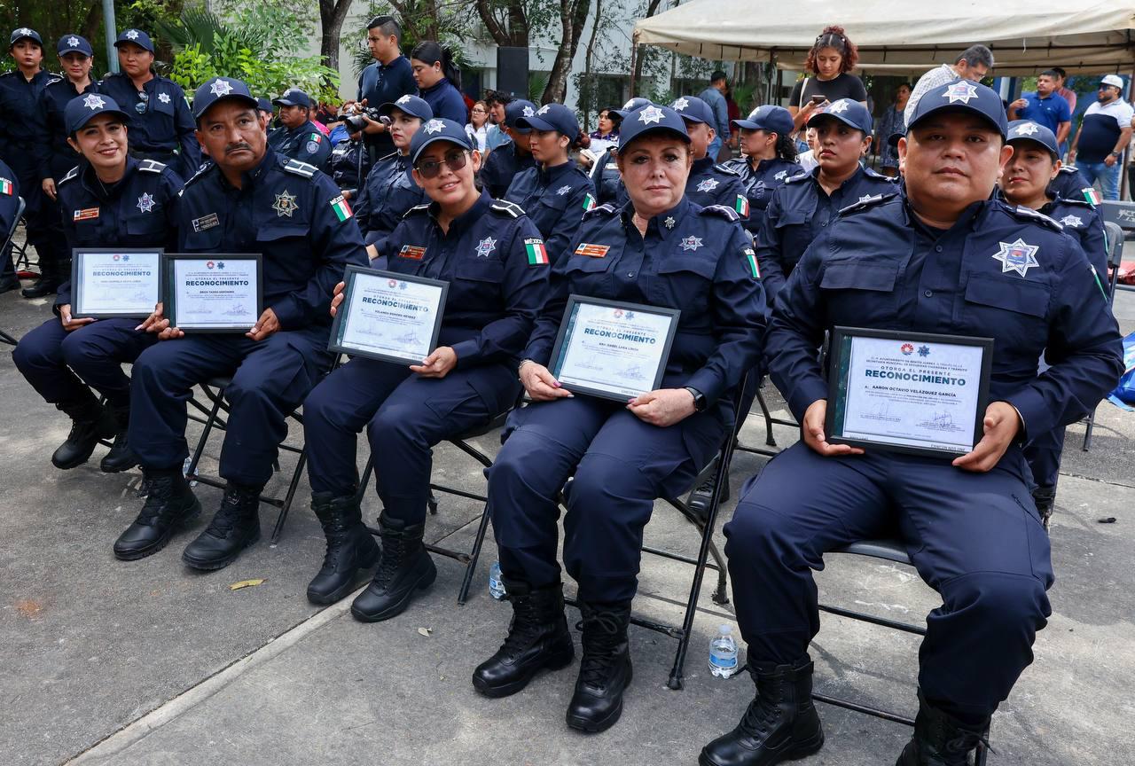 En el evento se hizo la entrega de reconocimientos a 35 elementos galardonados por la Primera Autoridad Municipal y demás autoridades, quienes hicieron énfasis en la vocación y entrega total a la labor policial, por tener esa acción inquebrantable de proteger a las y los cancunenses mediante la prevención del delito.