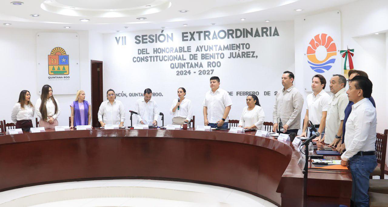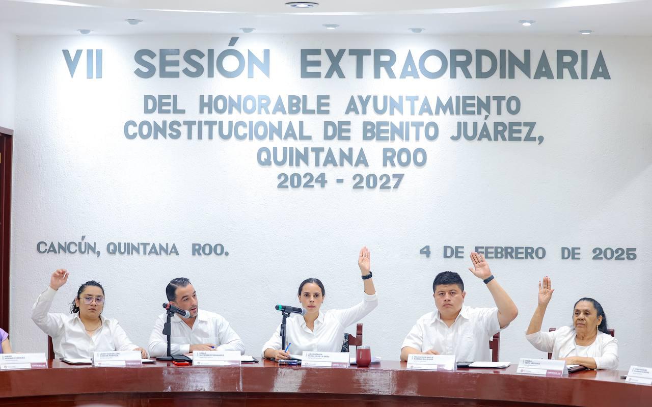 Cancún, Q. R., a 04 de febrero de 2025.- Durante la Séptima Sesión Extraordinaria, encabezada por la Presidenta Municipal, Ana Paty Peralta, el Cabildo de Benito Juárez aprobó diferentes acuerdos para reformar artículos de la Constitución Política del Estado Libre y Soberano de Quintana Roo, que se relacionan al cuidado del bienestar de las y los ciudadanos.