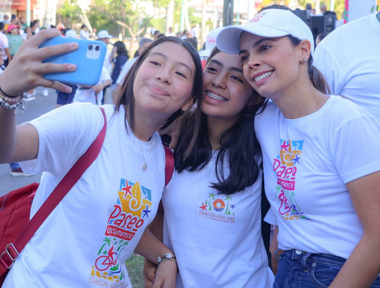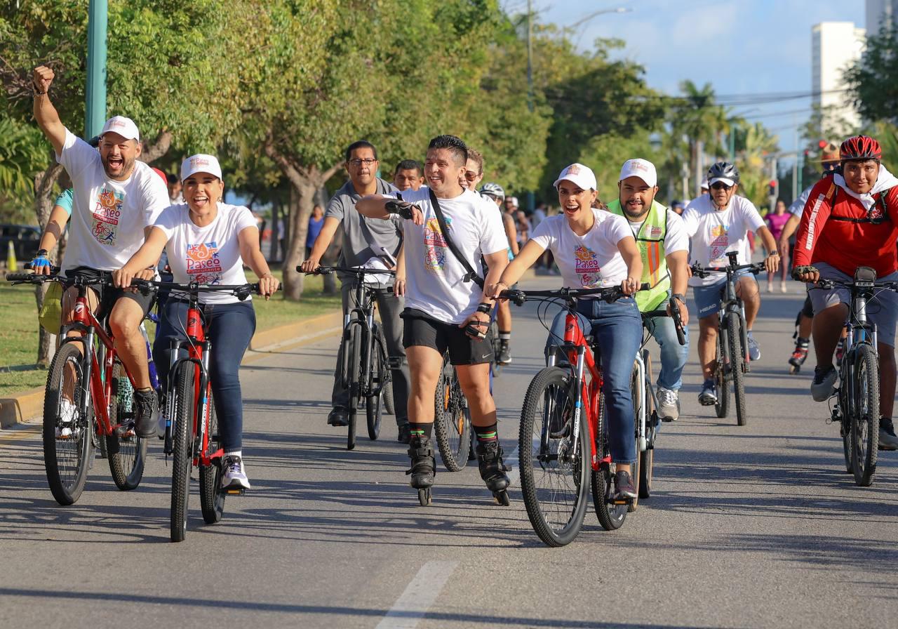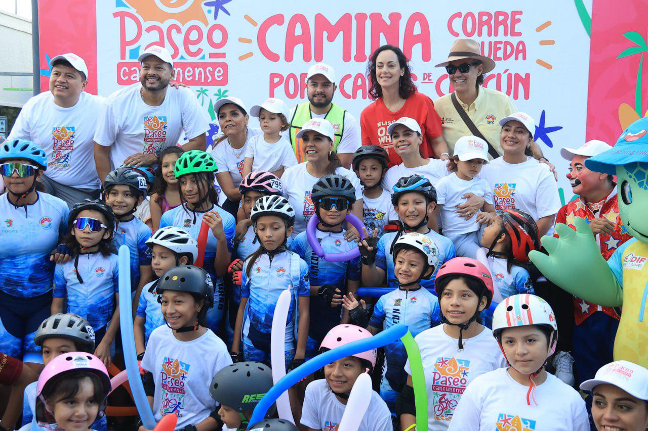 “Estamos en la primera edición del Paseo Cancunense, una vía para que puedan disfrutar en familia, para que los domingos podamos salir a caminar, a rodar en bici, a correr, pero sobre todo a hacer comunidad”, afirmó durante su intervención en este evento deportivo.