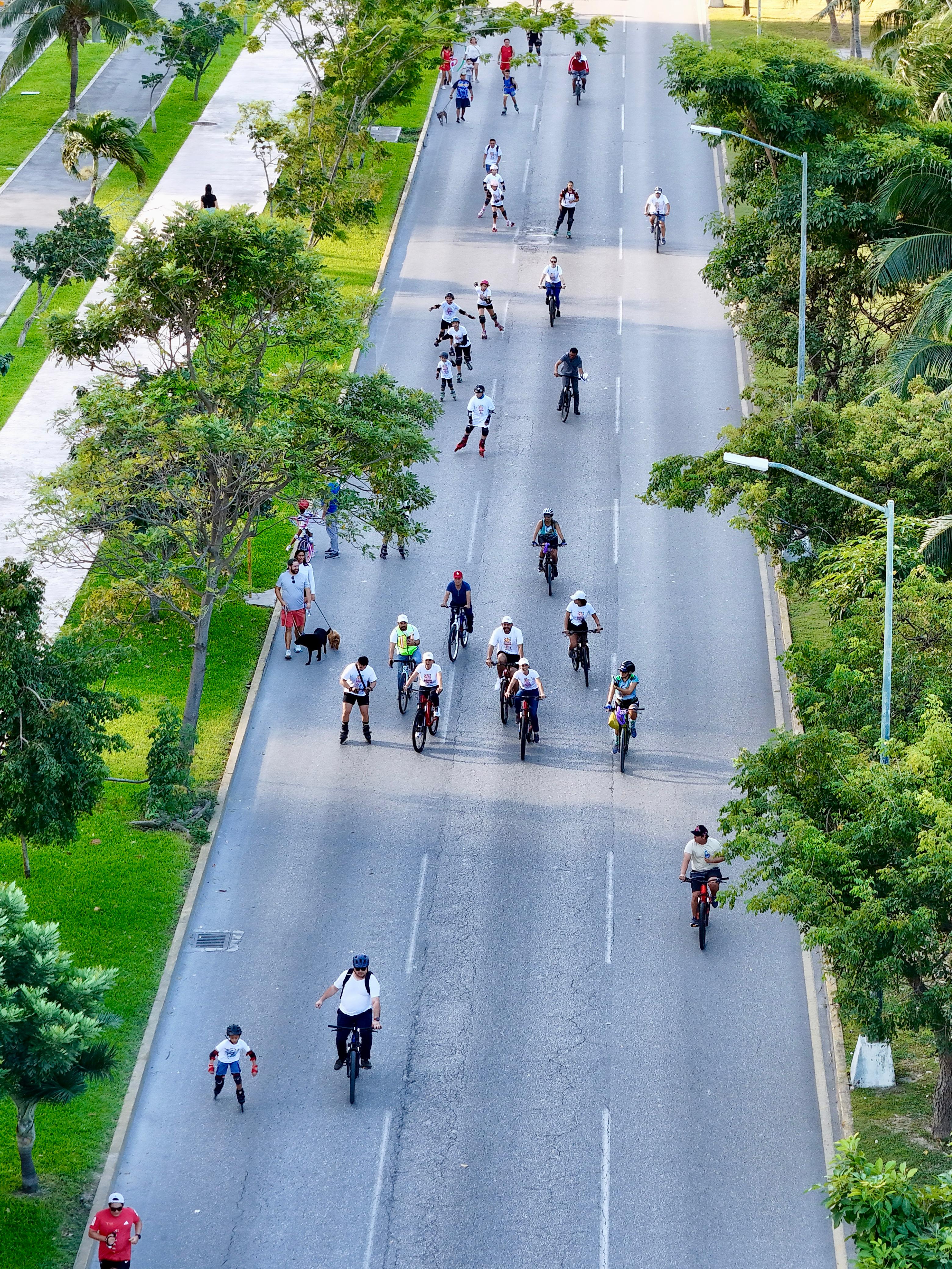 La Primera Autoridad Municipal explicó que el recorrido se llevó a cabo desde las 7:00 hasta las 12:00 horas, en el centro de la ciudad, tomando en cuenta que la ruta recreativa abarcó las avenidas Bonampak, Nader y Uxmal.