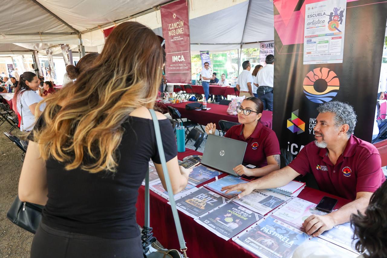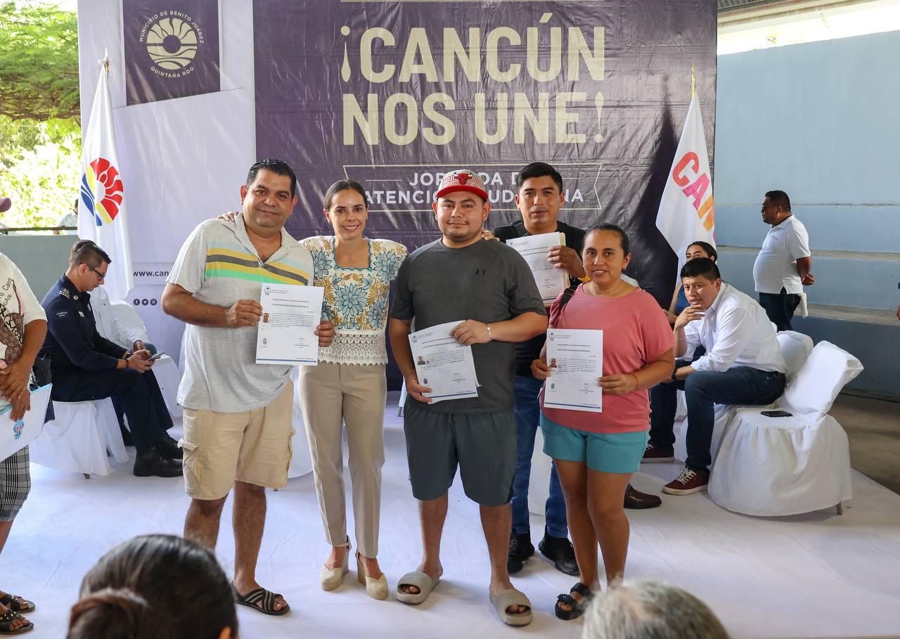 La Presidenta Municipal saludó a los ciudadanos que se encontraban en los diferentes módulos para acceder a los más de 100 trámites y servicios de dependencias municipales, estatales, federales y otras instancias para resolver peticiones y gestiones de esa zona y otras supermanzanas de Cancún, por lo que también entregó tres actas de nacimiento y 13 constancias antecedentes no registrales a los respectivos beneficiarios, así como escuchó a los habitantes en audiencias públicas sobre varios temas.