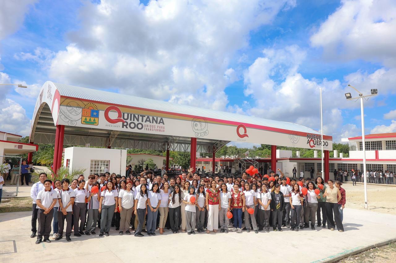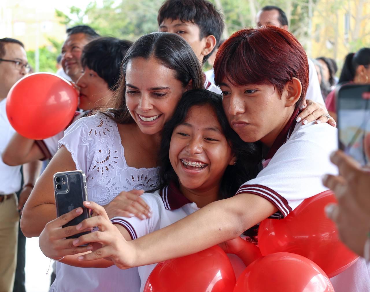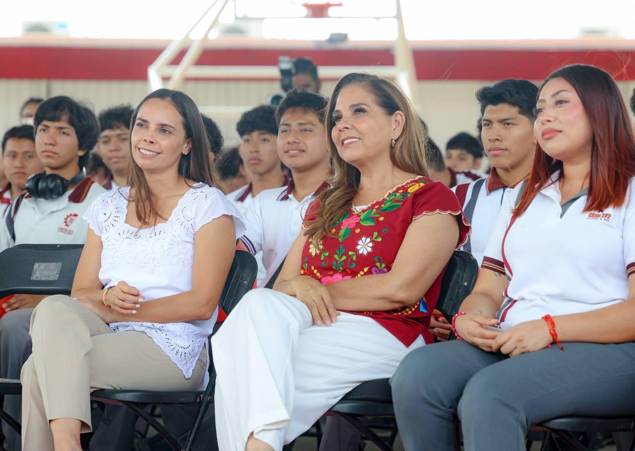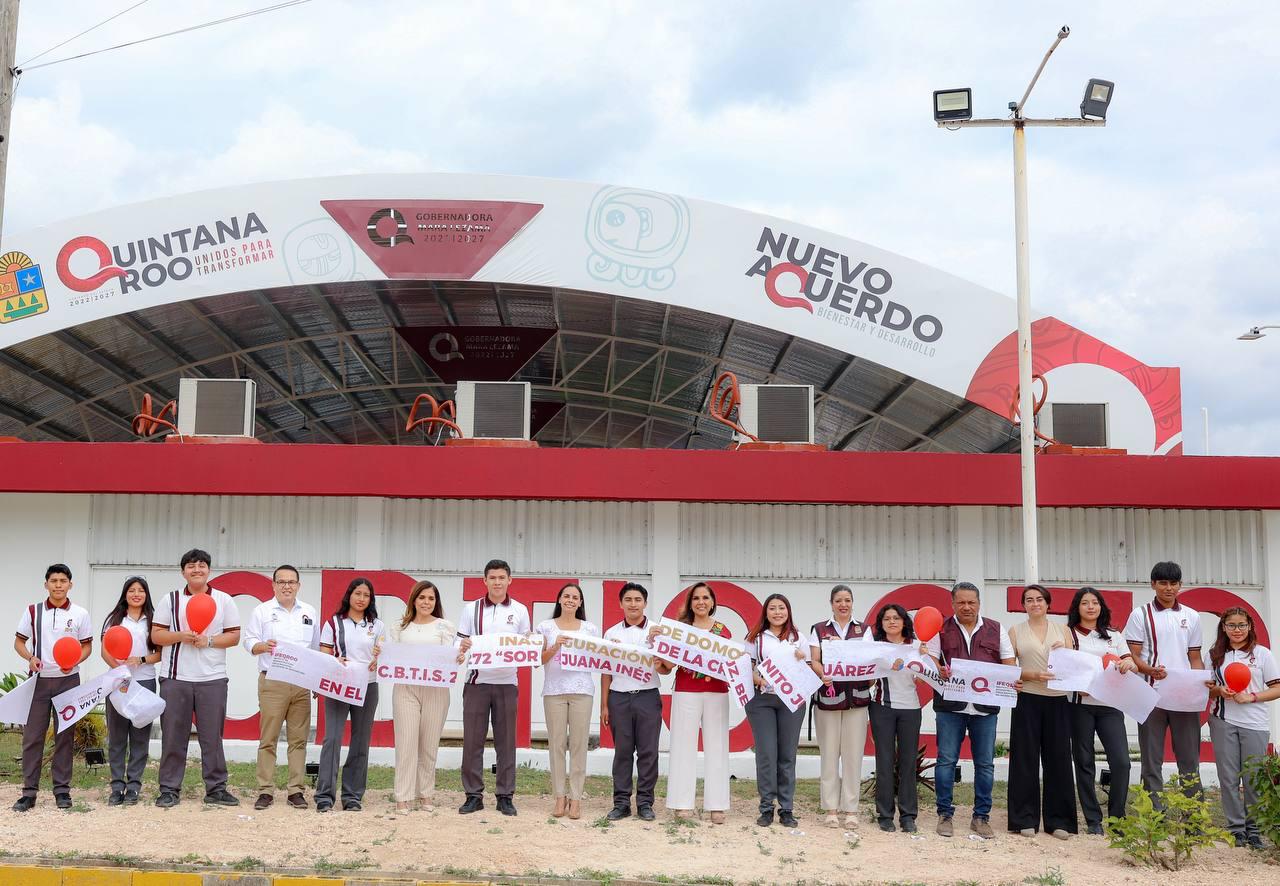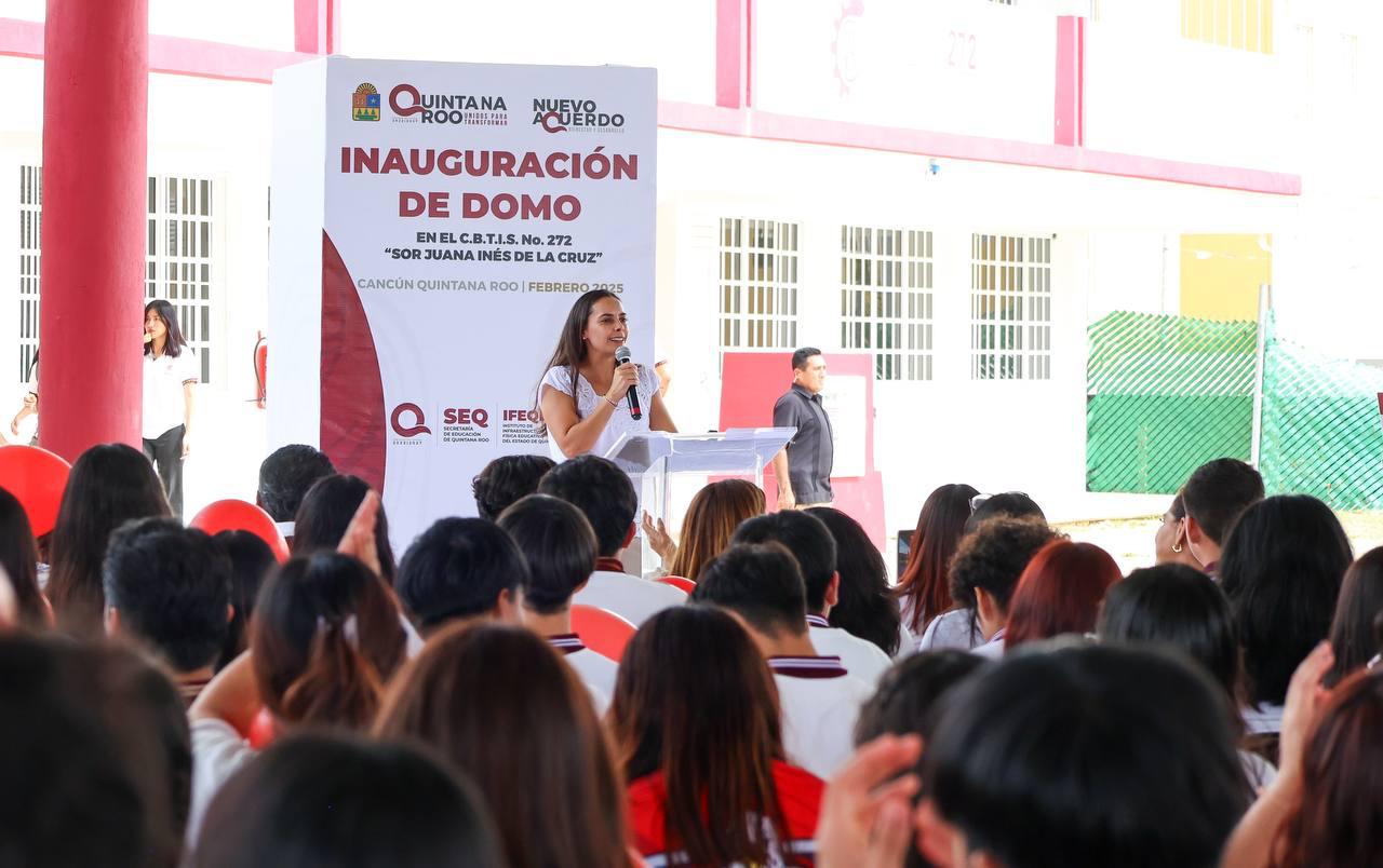 Cancún, Q. R., a 18 de febrero de 2025.- La Presidenta Municipal, Ana Paty Peralta, atestiguó la inauguración del domo de la cancha de usos múltiples del Centro de Bachillerato Tecnológico Industrial y de Servicios (CBTIS) 272 “Sor Juana Inés de la Cruz”, en la Supermanzana 255, encabezada por la Gobernadora, Mara Lezama, además de la firma del Acuerdo por el Bienestar y Desarrollo de Quintana Roo para Promover una Educación Integral, con espacios educativos dignos y la participación de las y los estudiantes de nivel medio superior.