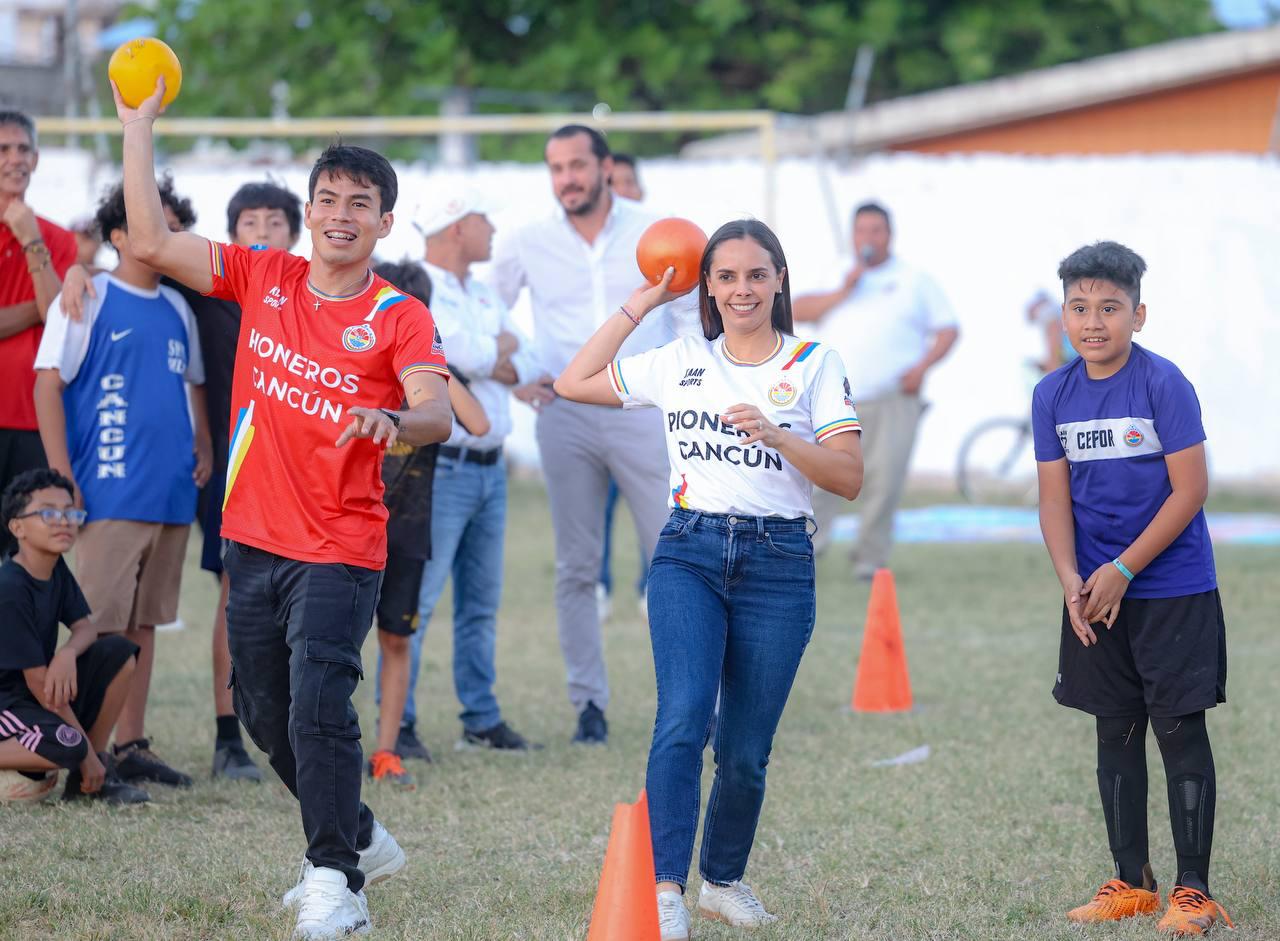 Durante la jornada a cargo de la Asociación del Club Pioneros de Cancún, en colaboración con diversas dependencias e institutos del Ayuntamiento, la Primera Autoridad Municipal participó junto a decenas de familias en las actividades y dinámicas dirigidas justamente para la integración comunitaria, tales como: quemados, gato, chutazo a gol, reta mixta en inflable, por mencionar algunas.