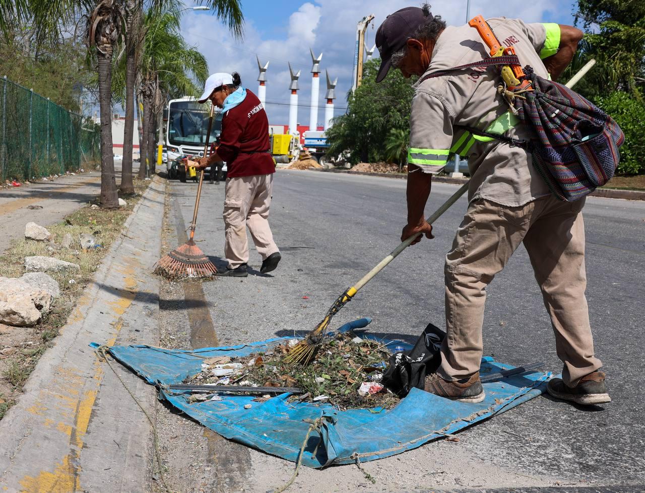 Luego de concluir su supervisión en Protección Civil, Ana Paty Peralta se trasladó al camellón frente a ese edificio municipal, donde constató que los espacios públicos estén en óptimas condiciones, verificando labores de limpieza general por parte de brigadas de la Dirección General de Servicios Públicos, en el fraccionamiento Paseo Las Palmas, de la Av. 20 de Noviembre a Av. Chetumal y la Av. Yaxché.