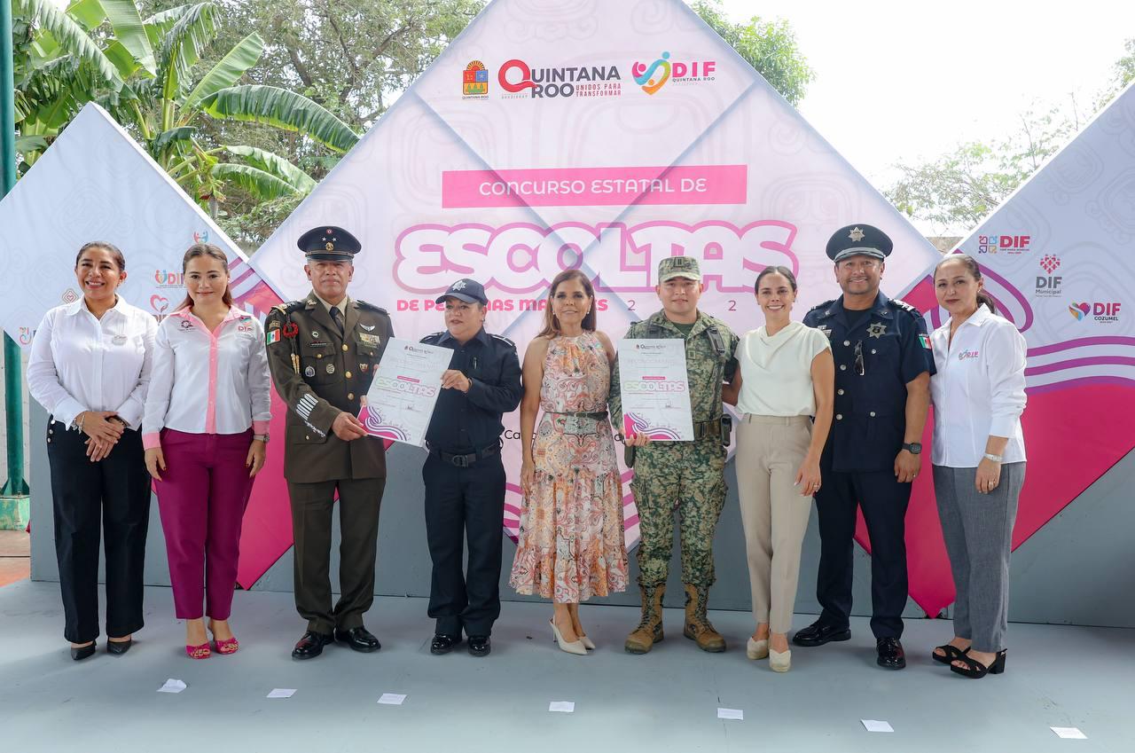 Cancún, Q. R., a 24 de febrero de 2025.- En su calidad de municipio anfitrión, se llevó a cabo el “Concurso Estatal de Escoltas de Personas Mayores 2025”, donde la Presidenta Municipal, Ana Paty Peralta y la presidenta honoraria del Sistema DIF Quintana Roo, Verónica Lezama Espinosa, premiaron a los ganadores, reconociendo con orgullo la vitalidad y energía de las concursantes, quienes en el marco del Día de la Bandera, promueven e impulsan el respeto a los símbolos patrios y fomentan la sana convivencia.