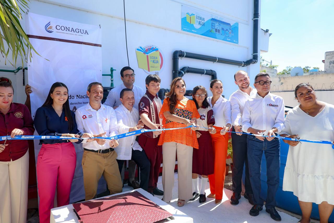 Cancún, Q. R., a 25 de febrero de 2025.- En el marco de la inauguración del programa “Escuelas con Agua” y firma del Nuevo Acuerdo por el Bienestar y Desarrollo de Quintana Roo, encabezadas por la gobernadora, Mara Lezama, la Presidenta Municipal, Ana Paty Peralta, reafirmó que en la construcción del futuro con responsabilidad ambiental se debe mantener el cuidado de los recursos naturales e hídricos para proteger el planeta.