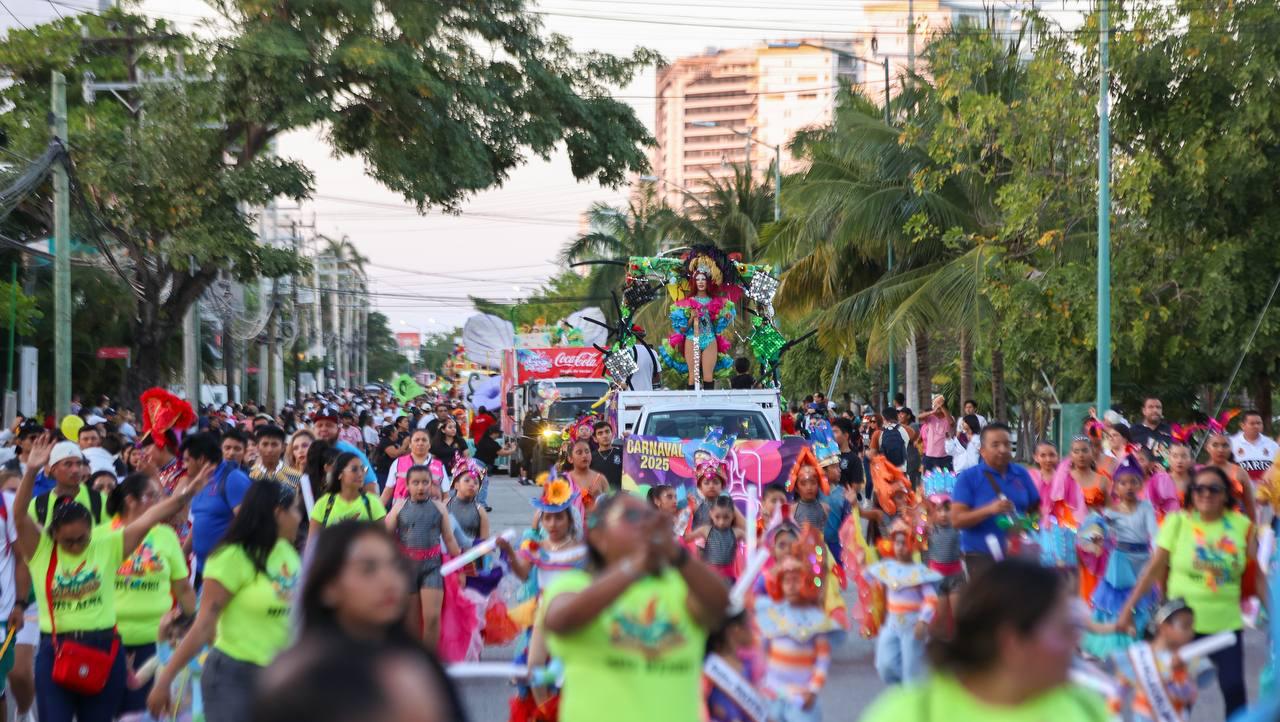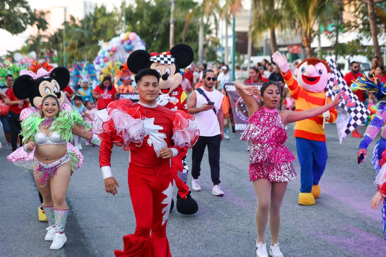 Durante el desfile que recorrió las principales avenidas de Cancún, cientos de familias y porras se aglomeraron en las banquetas para disfrutar del paseo de carros alegóricos en apoyo a los Reyes y Reinas, quienes al ritmo de la tradicional batucada, música moderna, salsa, merengue y cumbia, entre otros géneros musicales, bailaron durante el trayecto en la Avenida Bonampak desde la Avenida Chichén Itzá hasta llegar al Malecón Tajamar.