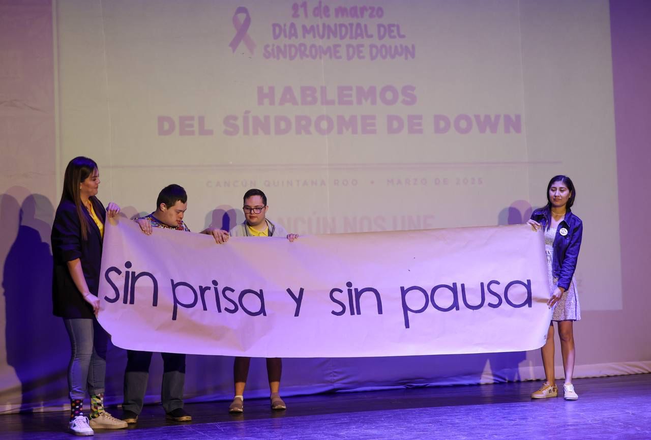 Cancún, Q. R., a 21 de marzo de 2025.- “La inclusión no es solo una palabra, es una tarea de todos los días. Es garantizar que cada persona tenga oportunidades, que sea respetada, que sea valorada y que pueda cumplir sus sueños en todo lo que quiera. Porque eso es parte de la transformación y de construir una ciudad justa, una ciudad en la que todas y todos tenemos un lugar importante”, dijo la Presidenta Municipal, Ana Paty Peralta, al conmemorar el Día Mundial del Síndrome de Down, con la plática “Hablemos del síndrome de down”, en las instalaciones del Teatro 8 de Octubre.
