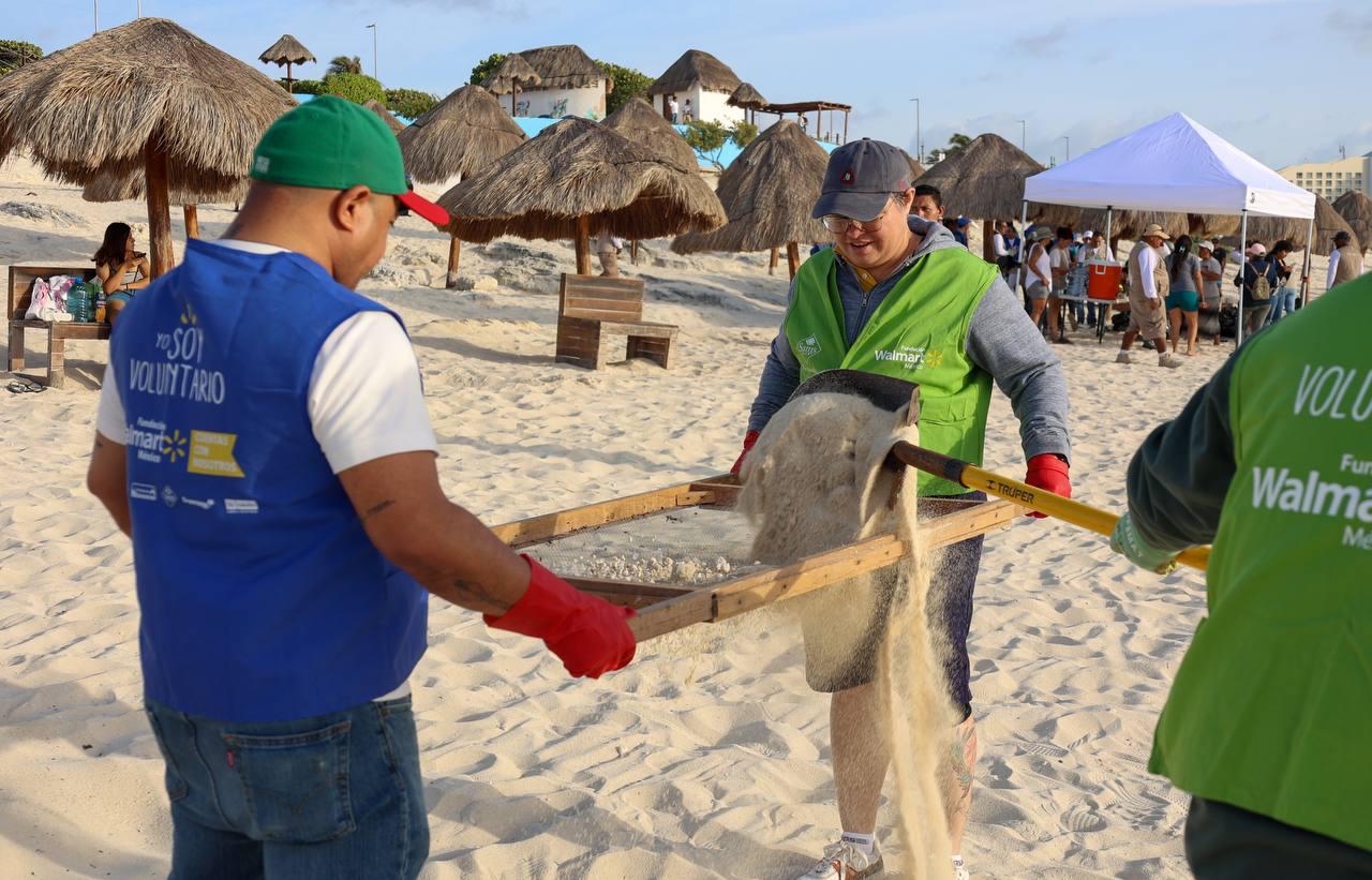 En el kilómetro 17.5 de la Zona Hotelera y con los primeros rayos de sol en el arenal cancunense, personal de las direcciones de la Zona Federal Marítimo Terrestre (ZOFEMAT), Ecología y voluntarios de la iniciativa privada y sociedad civil, se concentraron para llevar trabajo en áreas clave de los arenales y sus alrededores utilizando técnicas de cribado manual para garantizar una limpieza efectiva.