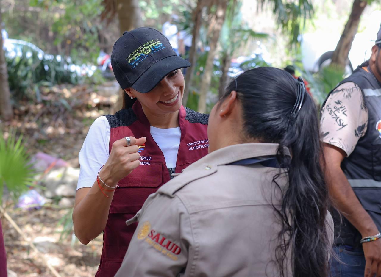 Luego de la actividad, la Presidenta Municipal se trasladó a la Supermanzana 100, donde se llevó a cabo una jornada del Programa de Saneamiento e Integración Social de Humedales de Agua Dulce de la Ciudad de Cancún, con una plática a los asistentes y la posterior limpieza del Cenote Urbano Tuunich, acompañada del titular de Ecología, Fernando Haro Salinas.