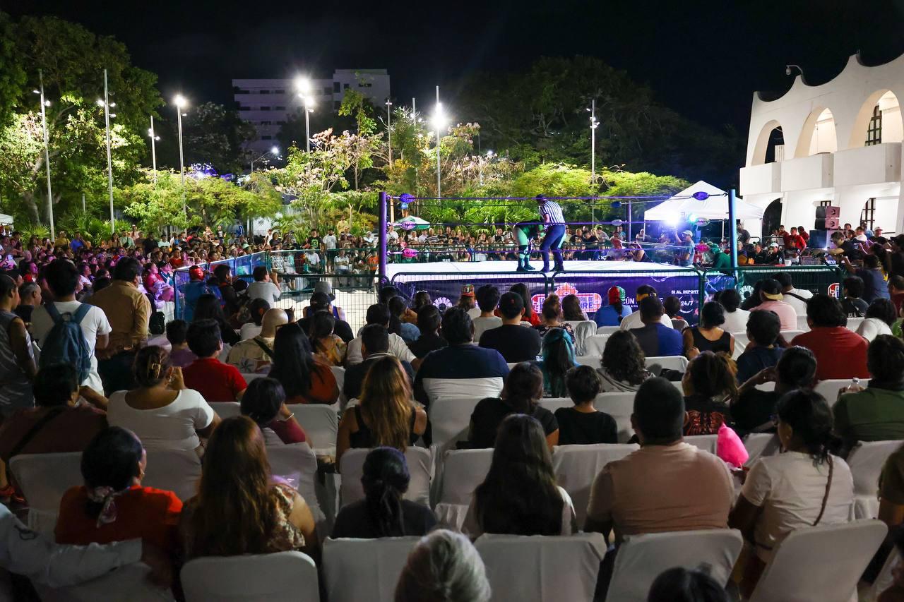 Cancún, Q. R., a 23 de marzo de 2025.- A fin de fortalecer la convivencia familiar, fomentar el deporte y rescatar una de las tradiciones más queridas de nuestro país, el Ayuntamiento de Benito Juárez, a través del Instituto del Deporte (IMD), en coordinación la Comisión de Box, Lucha Libre y Artes Mixtas Profesional, inauguró el Campeonato Municipal de Lucha Libre 2025, en la explanada del Palacio Municipal.