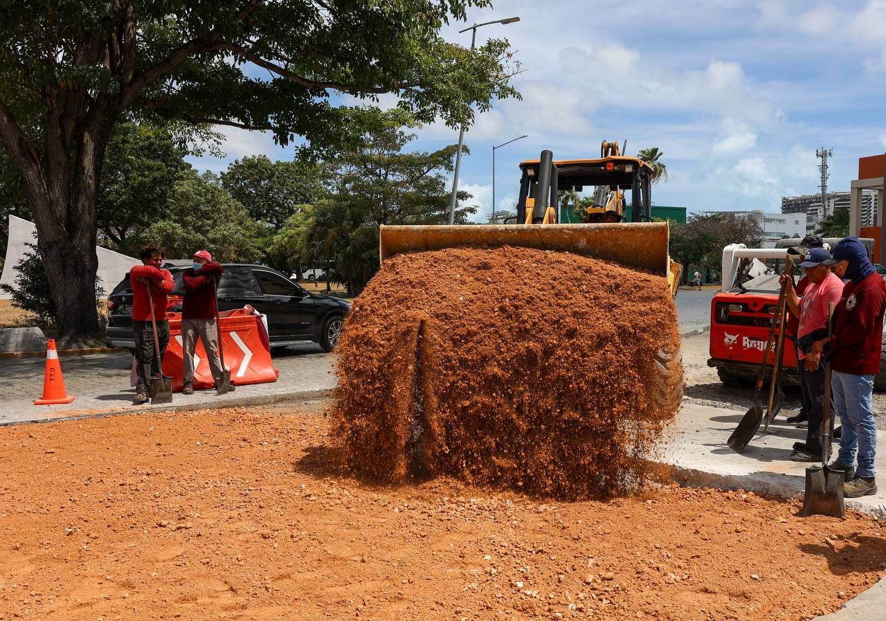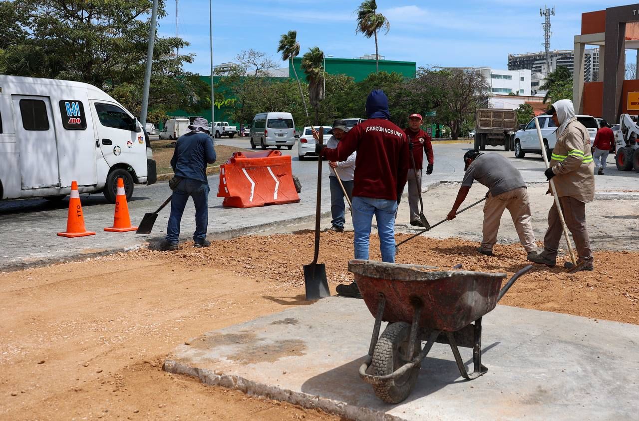 Cancún, Q. R., a 01 de abril de 2025.- La Presidenta Municipal, Ana Paty Peralta, supervisó los trabajos de mantenimiento a la vialidad en la Glorieta de la Historia de México, que registran un avance del 80 por ciento, para beneficio de miles de automovilistas que transitan diariamente por ese punto emblemático del centro de la ciudad, ubicado entre las avenidas Tulum y Uxmal.