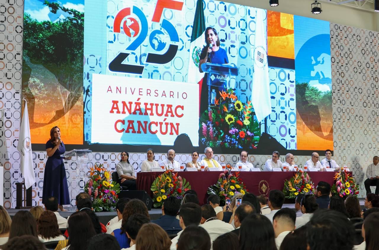 Ante la comunidad escolar, Ana Paty Peralta resaltó el legado de la casa de estudios que sigue formando generaciones de líderes comprometidos con la sociedad, de excelencia y con humanismo, gracias a 25 años de trabajo, visión y esfuerzo de académicos y administrativos que integran la universidad.