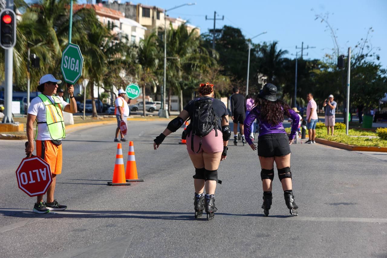 turistas que iban por toda la ruta en patines, bicicletas, corriendo y