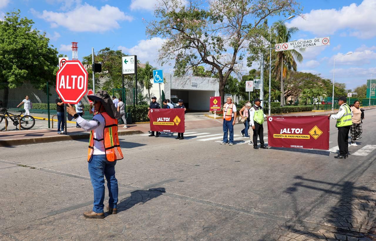 Esta acción se llevó a cabo en la avenida Cobá frente al Instituto Mexicano del Seguro Social (IMSS)-Hospital General de la Zona No. 3, donde se inculcó a las y los conductores que deben respetar la señalización en las avenidas y calles de la ciudad.