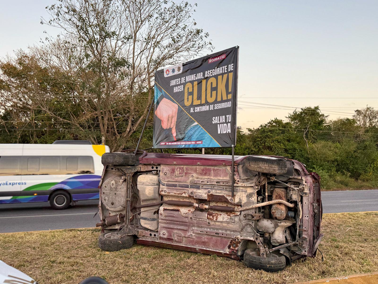 La campaña estará visible en cinco puntos estratégicos de alta afluencia vehicular, con apoyo de material gráfico y vehículos siniestrados colocados de forma simbólica para recordar a la ciudadanía los peligros de la imprudencia al volante:
