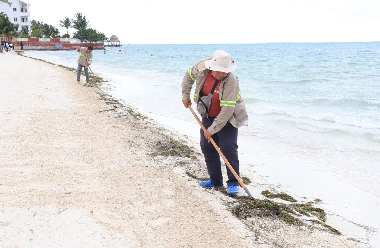 diariamente labores de limpieza y retiro de sargazo en las siete playas públicas