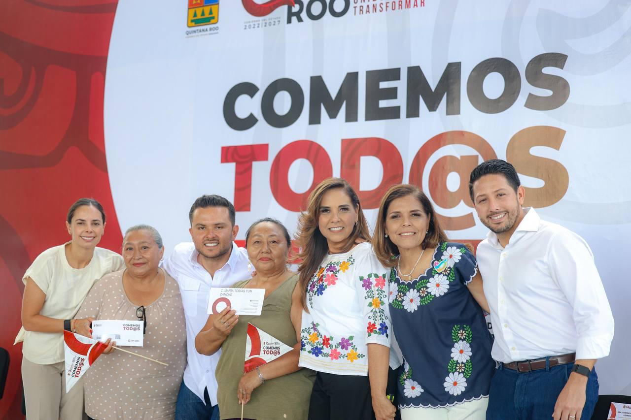 Cancún, Q. R., a 23 de abril de 2025.- “Sepan que no están solos, aquí hay un gobierno estatal que los respalda y un gobierno municipal que los acompaña. Vamos a seguir trabajando unidas y unidos para que las familias vivan mejor y tengan una calidad de vida digna”, aseguró la Presidenta Municipal, Ana Paty Peralta, al atestiguar la entrega de 700 apoyos alimentarios en especie y tarjetas monetarias del programa “Comemos Todos” de manos de la Gobernadora, Mara Lezama.