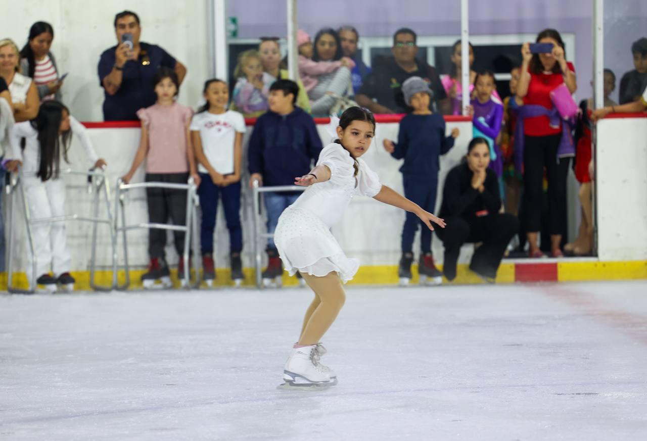 Acompañada del director del Instituto del Deporte, Alejandro Luna López, aproximadamente 100 infantes y padres de familia, Ana Paty Peralta disfrutó de la presentación de patinaje artístico de niñas patinadoras, quienes demostraron su talento en la pista de hielo más grande de Latinoamérica.