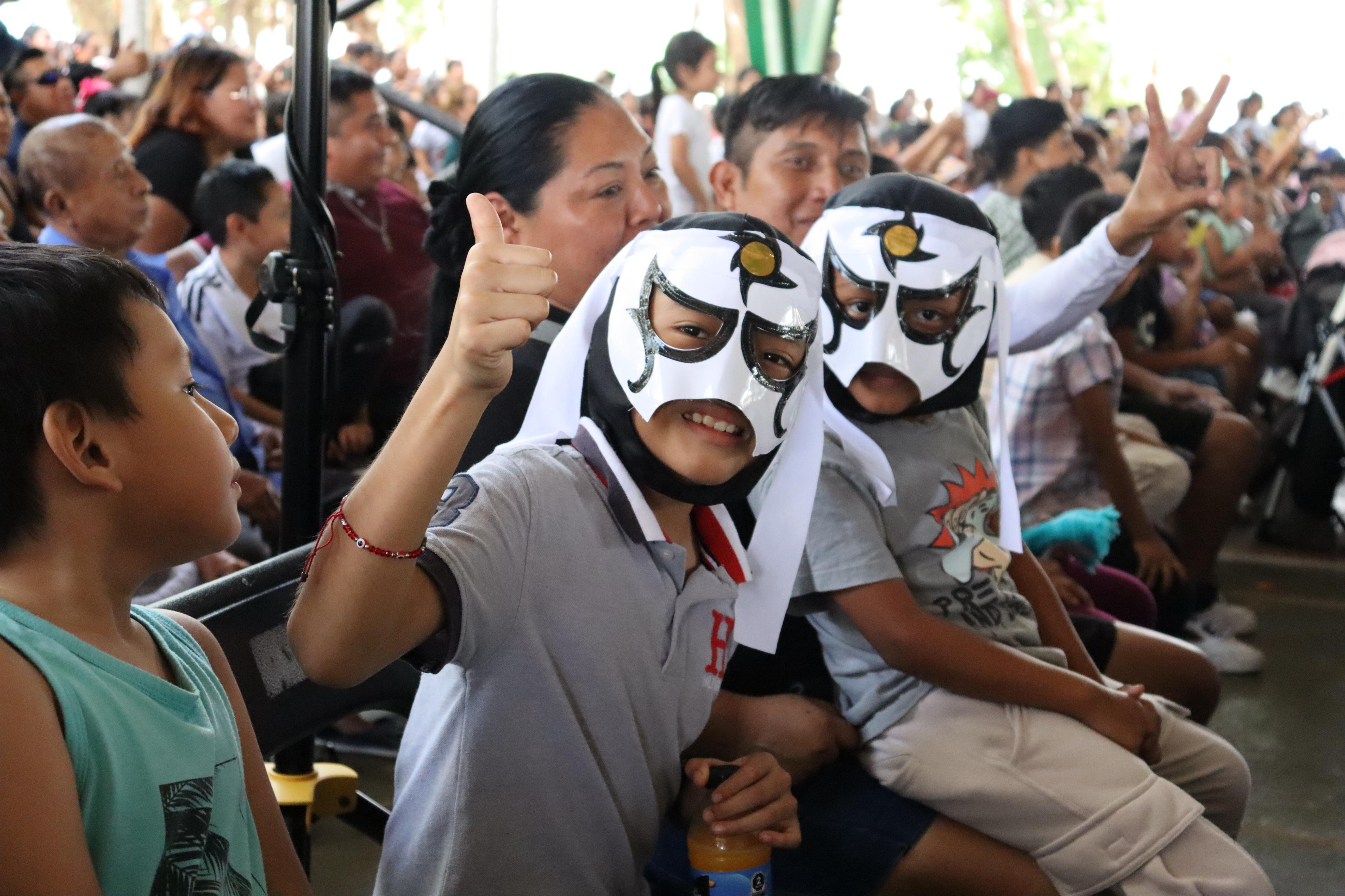 Tras esta acción, las autoridades estatales y municipales acudieron al domo deportivo de la Supermanzana 259 para convivir con las niñas, niños, adolescentes y adultos, donde no faltaron los abrazos y las muestras de cariño.