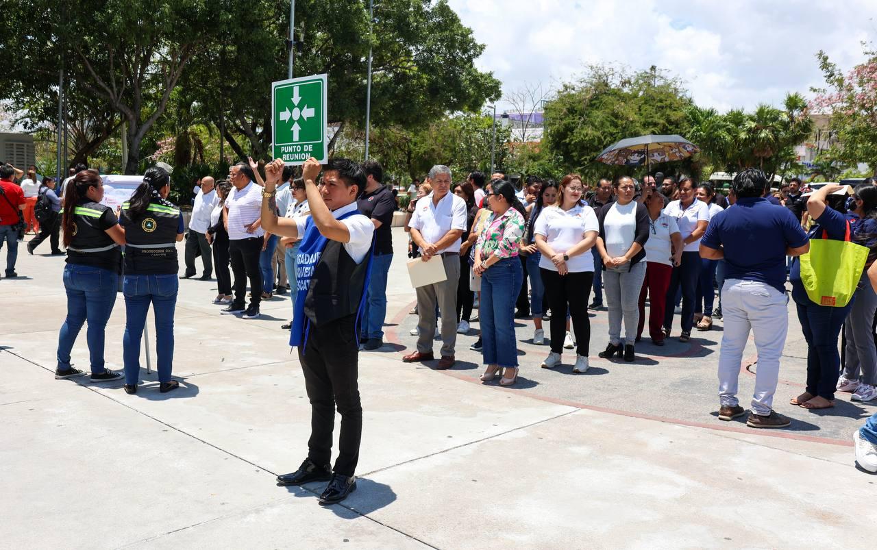 Al escuchar la alarma, 212 colaboradores del Ayuntamiento procedieron a salir de sus oficinas en orden y tranquilidad, para dirigirse a la explanada de la Plaza de la Reforma, como punto de encuentro.