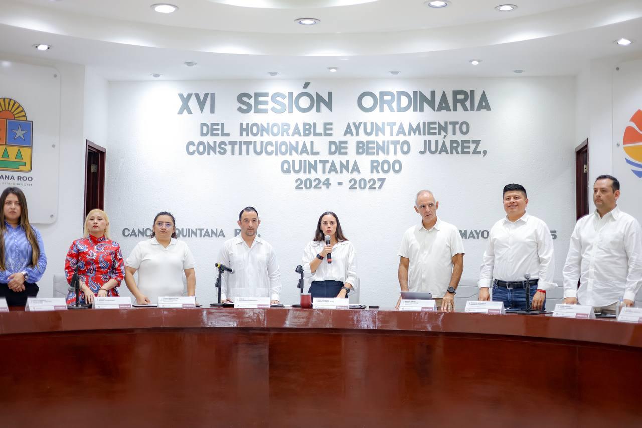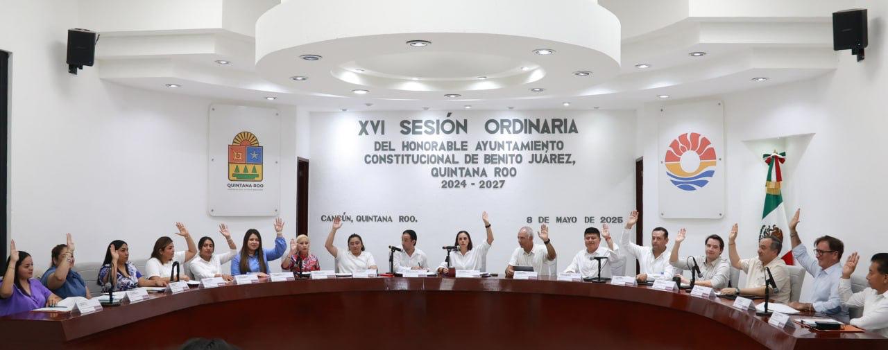 Cancún, Q. R., a 08 de mayo de 2025.- “Hoy es un día muy importante para nuestra ciudad, con la aprobación de este segundo paquete de inversión por 377 millones de pesos, por fin llegó la esperanza a colonias que durante años soñaron con obras”, expresó la Presidenta Municipal, Ana Paty Peralta, al encabezar la Décima Sexta Sesión Ordinaria del Cabildo de Benito Juárez.
