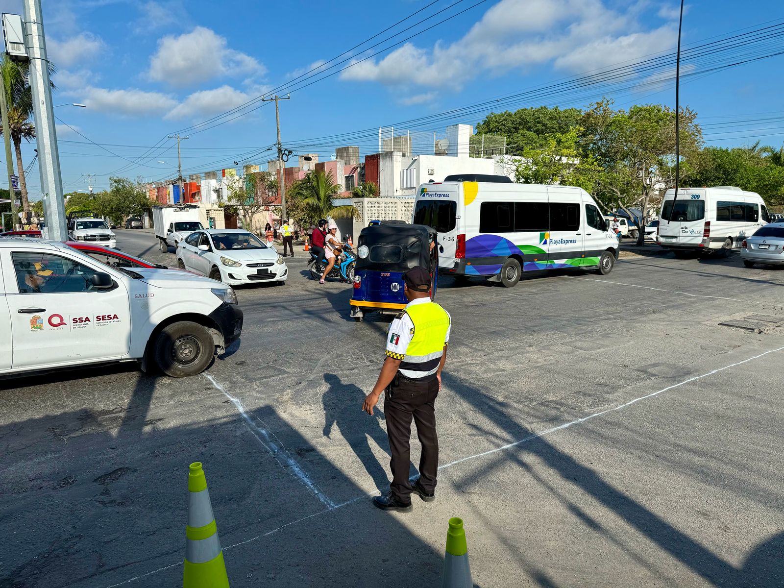 con el apoyo de dos elementos de Tránsito para garantizar la seguridad vial