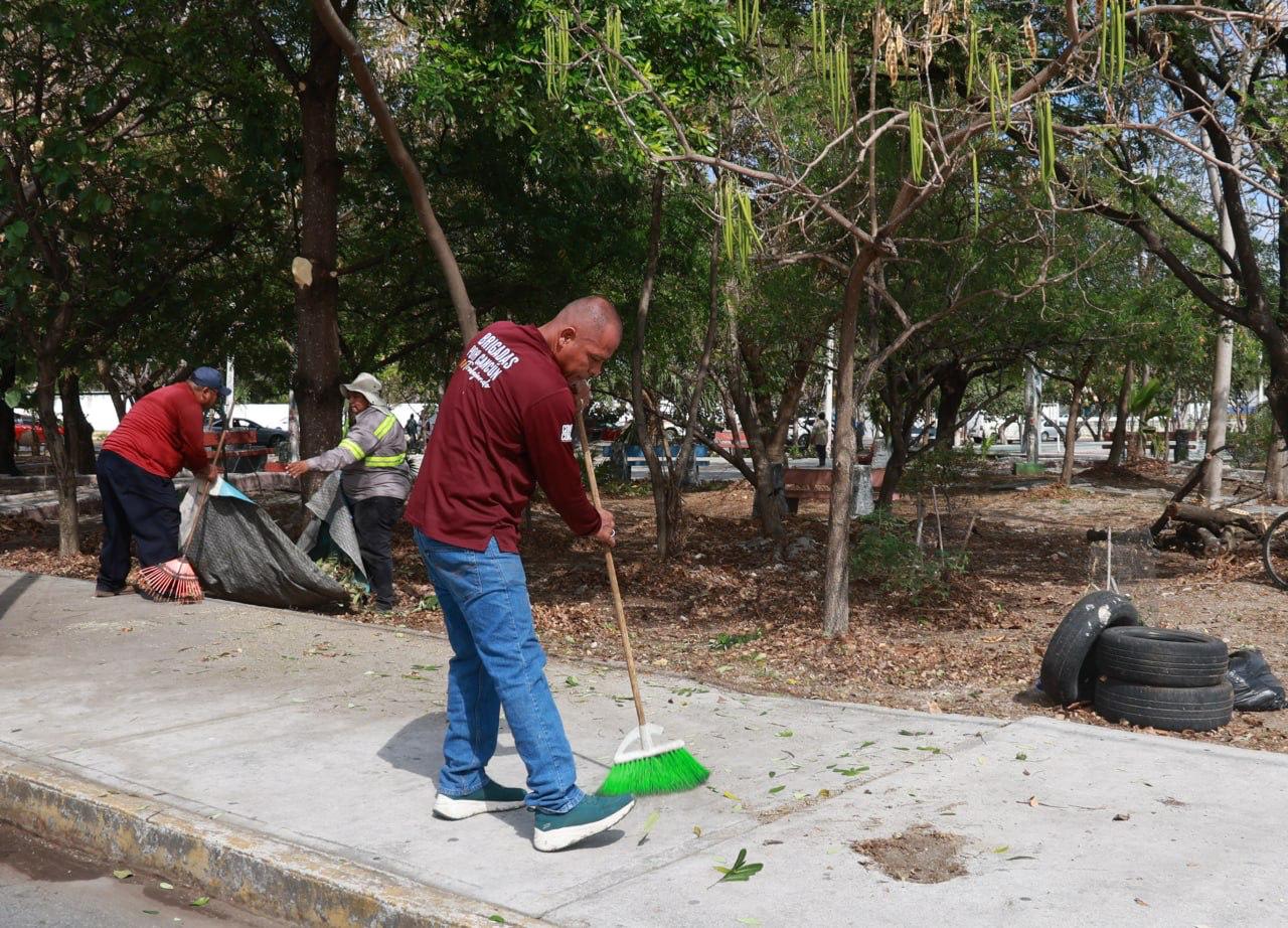 Por ello, las brigadas de dicha dependencia, recorrieron las inmediaciones del parque, ubicado en la Avenida Chac Mool, entre Avenida Miguel Hidalgo y Calle 121 Norte, donde retiraron basura vegetal, además de realizar chapeo; deshierbe y poda, así como limpieza general.