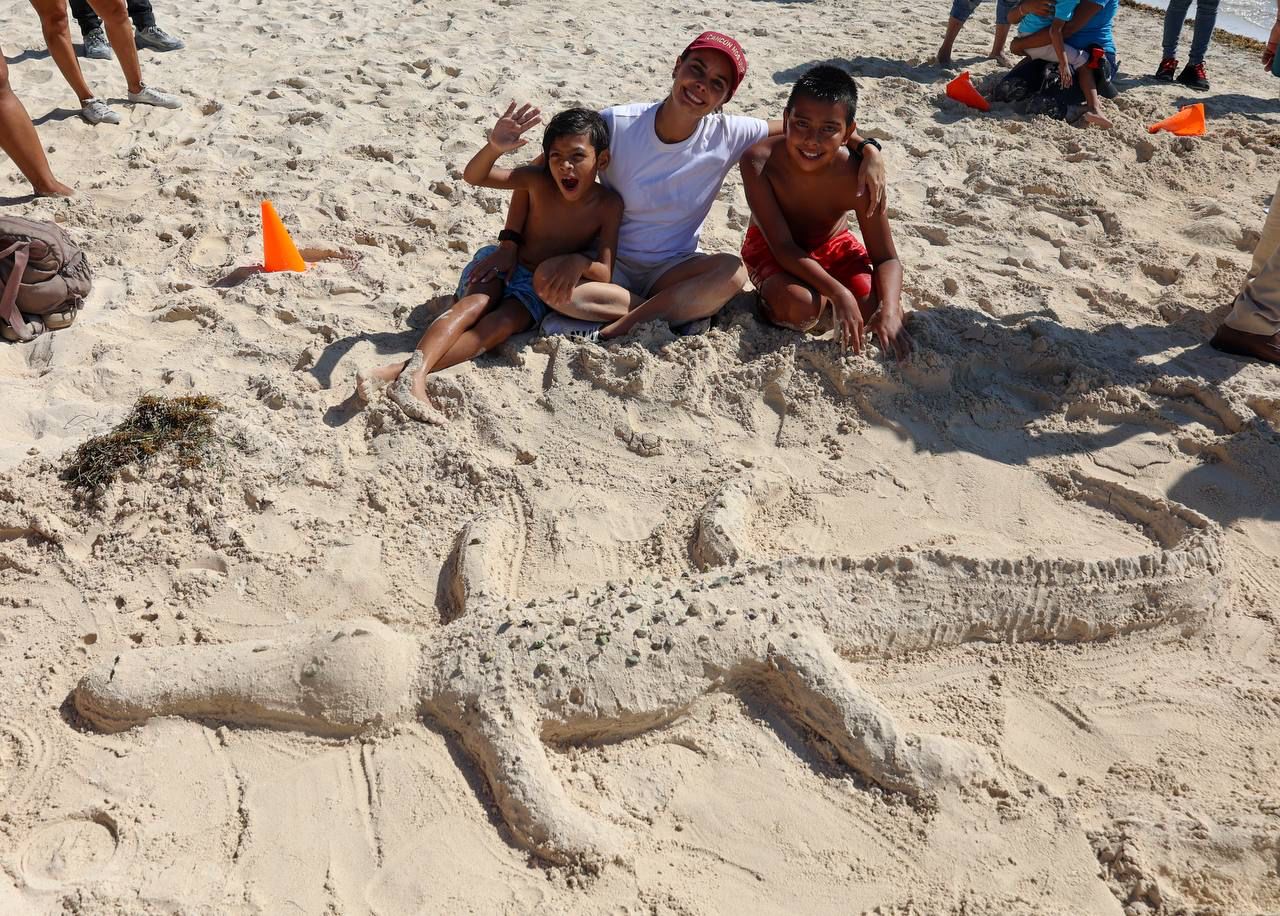 Al ser la temática de fauna marina, esta mañana el arenal se llenó de esculturas de tortuga, cocodrilo, mantarrayas, estrellas de mar, tiburón, entre otros.