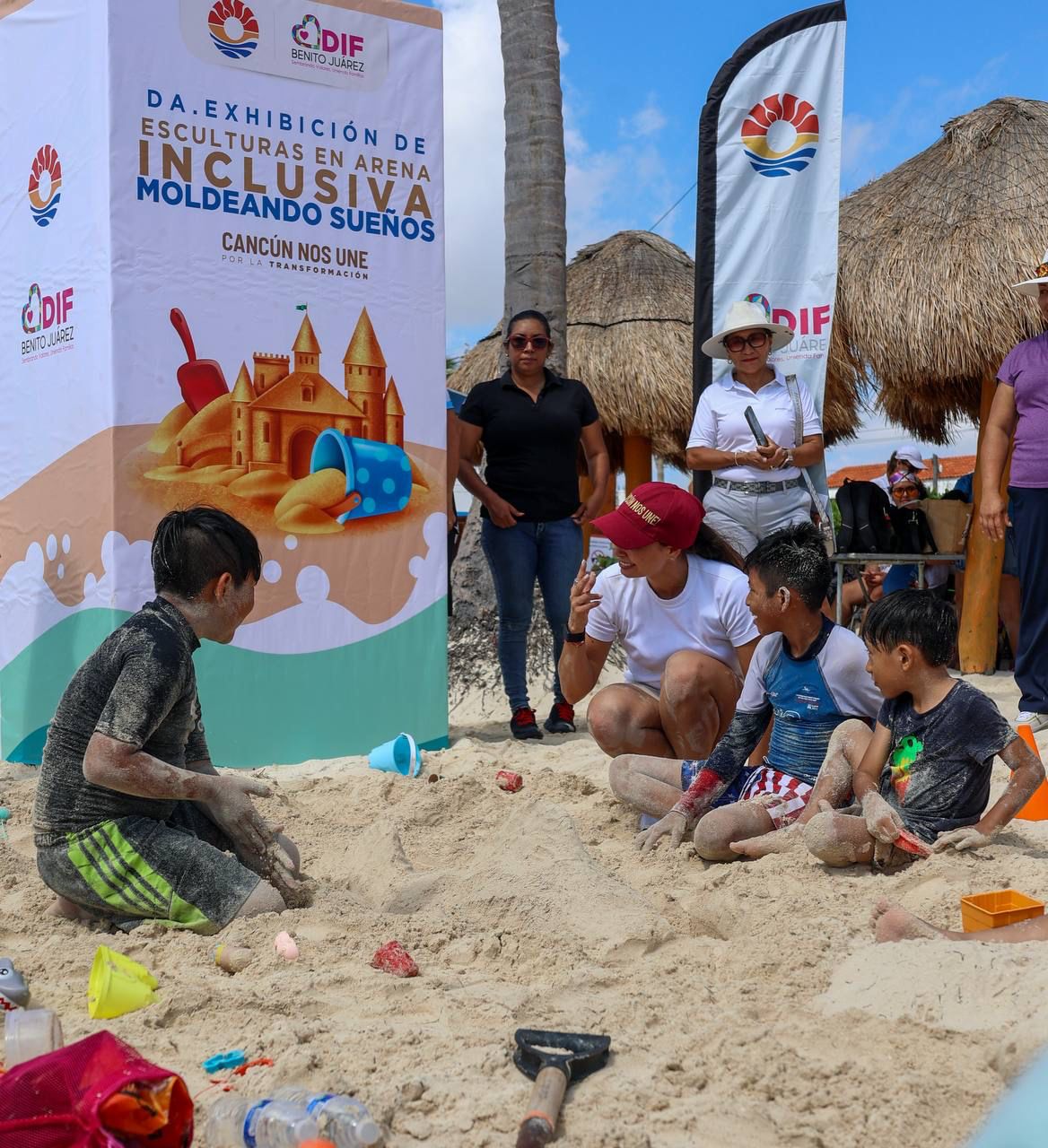 Cancún, Q.R., a 17 de mayo del 2025.- Con el objetivo de promover la integración, la fraternidad y la inclusión entre niñas, niños y adolescentes, la Presidenta Municipal, Ana Paty Peralta, instruyó al Sistema para el Desarrollo Integral de la Familia (DIF) Benito Juárez, para realizar la tercera edición de la exhibición de esculturas en arena inclusiva “Moldeando sueños 2025”.