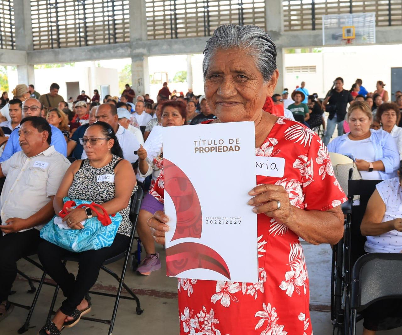 Durante la ceremonia se entregaron los primeros títulos a María Elena Jiménez Pérez y Eleazar May Canché, quienes iniciaron sus trámites en 1990 y 1991 respectivamente, sin obtener respuesta de cinco gobiernos anteriores.
