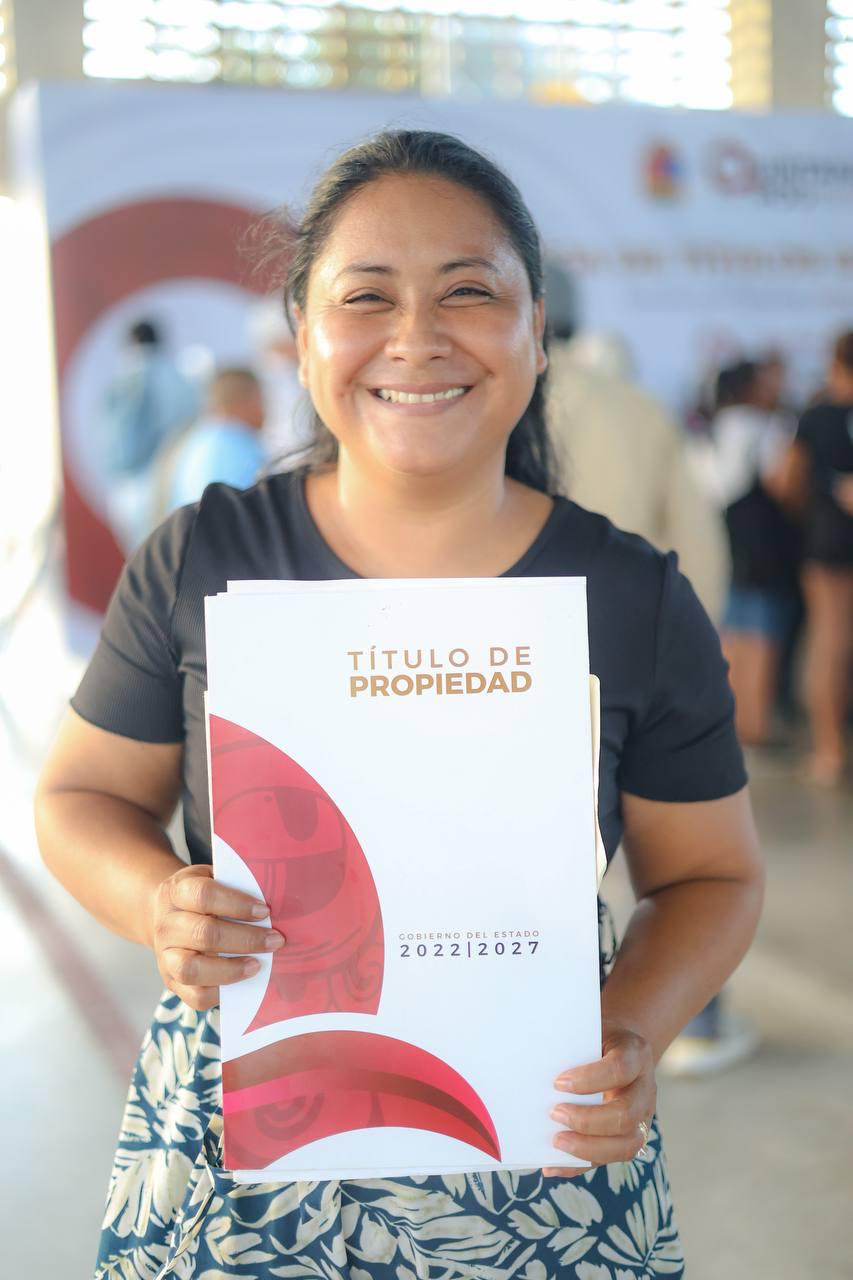 Cabe hacer mención que, la Presidenta Honoraria del Sistema DIF Quintana Roo, Verónica Lezama Espinosa; la directora general del Registro Público de la Propiedad y del Comercio, Miriann González Pliego, así como familiares de las y los beneficiarios, presenciaron la entrega de títulos de propiedad que los avala como legítimos propietarios de su vivienda.