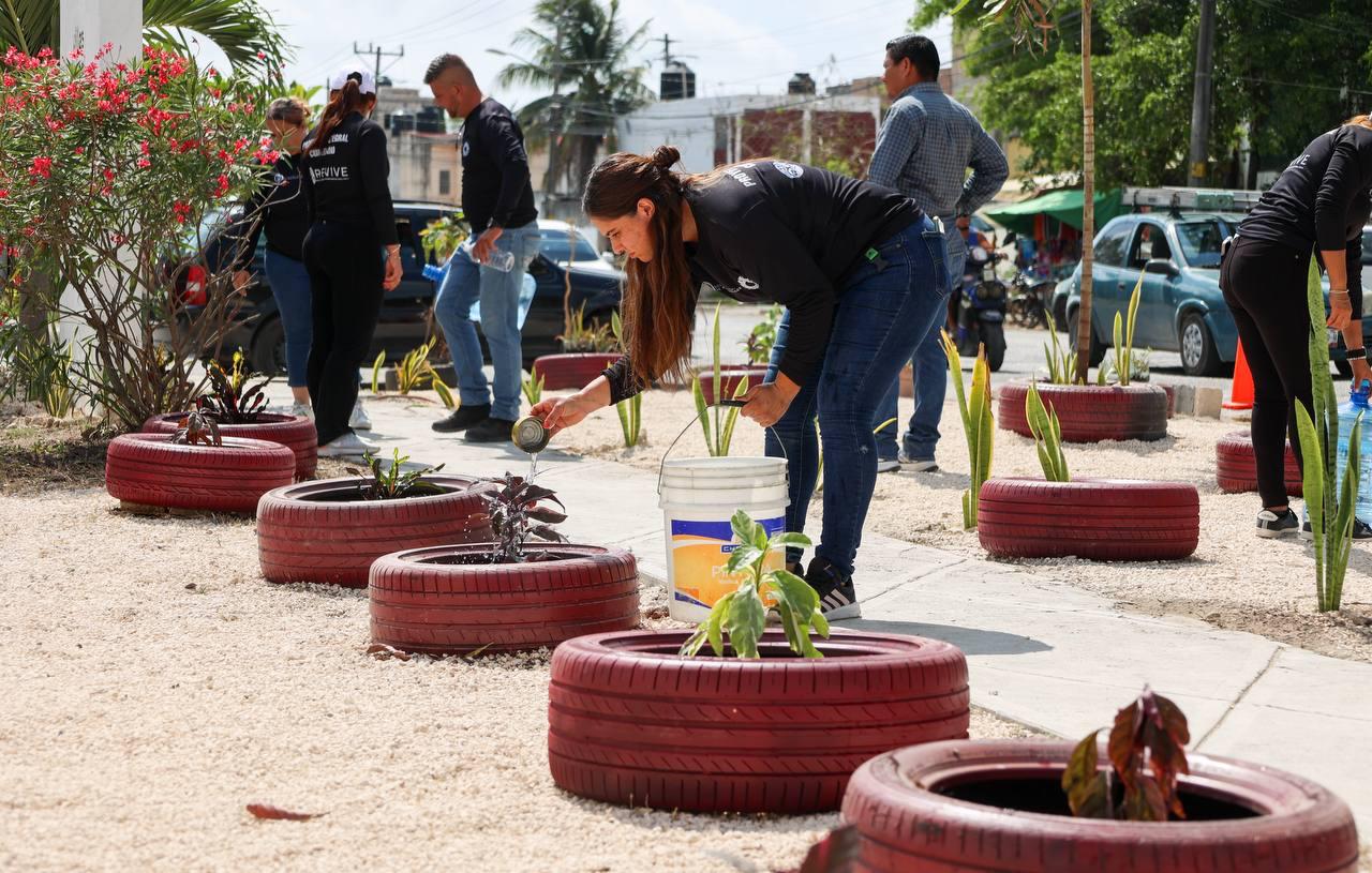 Acompañada por los habitantes de la zona, la Primera Autoridad Municipal constató la remodelación y embellecimiento del área ubicada en la intersección de la Avenida Miguel Hidalgo (Ruta 5) y Calle Villa Imperial, a cargo del organismo descentralizado Solución Integral de Residuos Sólidos (SIRESOL), gracias a numerosas plantas colocadas en maceteros que fueron elaboradas con llantas recicladas para que luciera hermoso y limpio.