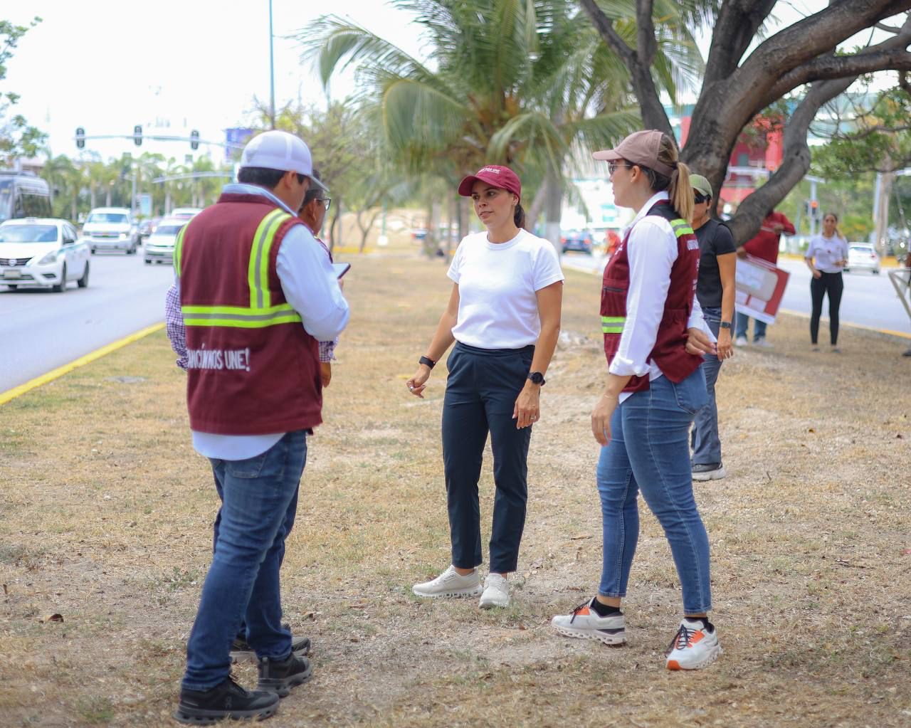 Al caminar por los andadores de la Av. Tulum, Ana Paty Peralta constató que las áreas públicas se encontrarán libre de residuos sólidos y que los conductores respeten las señalizaciones de tránsito, mientras dialogaba con los ciudadanos de la zona.