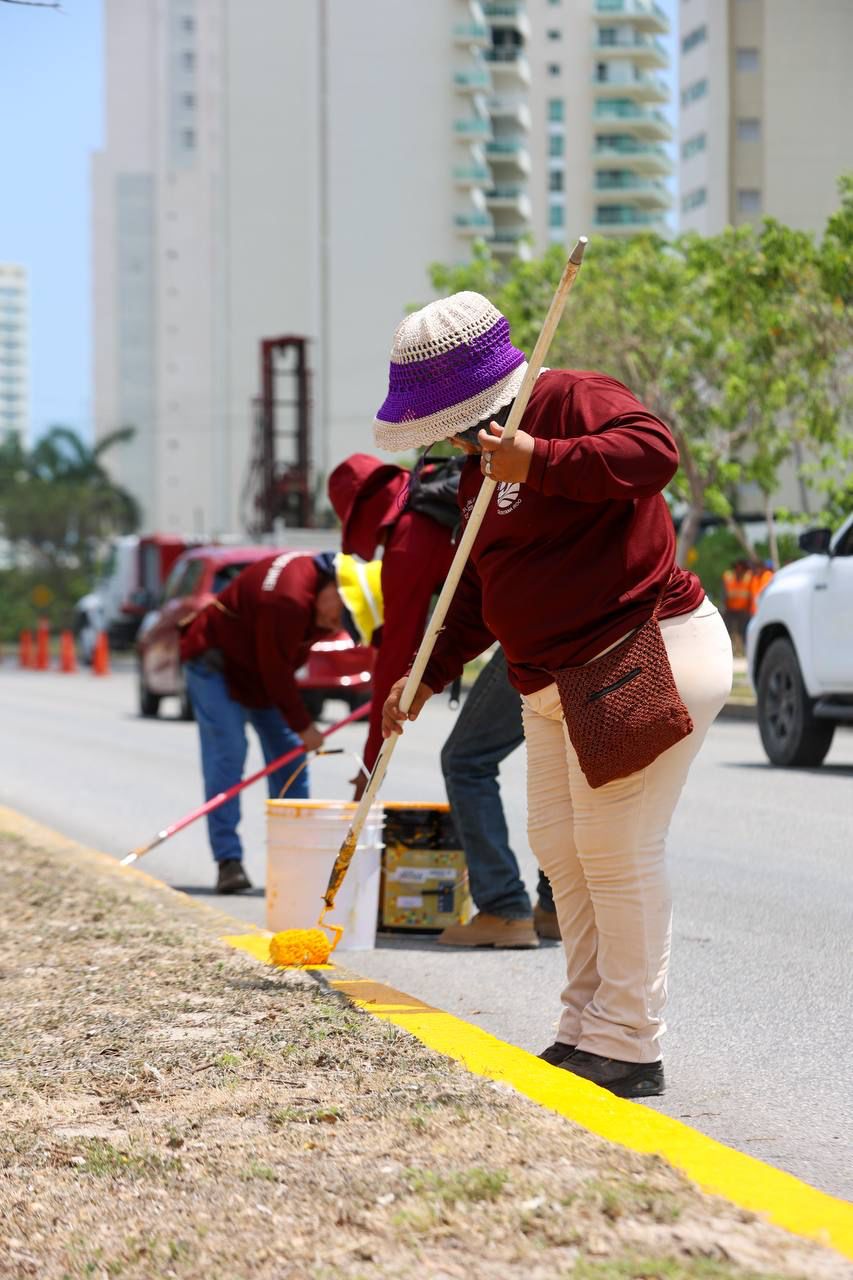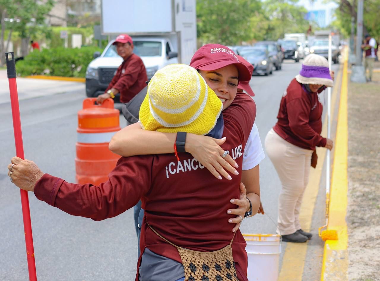 Cancún, Q. R., a 26 de mayo de 2025.- Con el compromiso de mejorar la imagen urbana de Cancún, la Presidenta Municipal, Ana Paty Peralta, supervisó los trabajos de limpieza realizados por personal de la Dirección de Servicios Públicos en el primer cuadro de la ciudad, en la Av. Bonampak, desde la glorieta del kilómetro 0 hasta la Av. López Portillo.